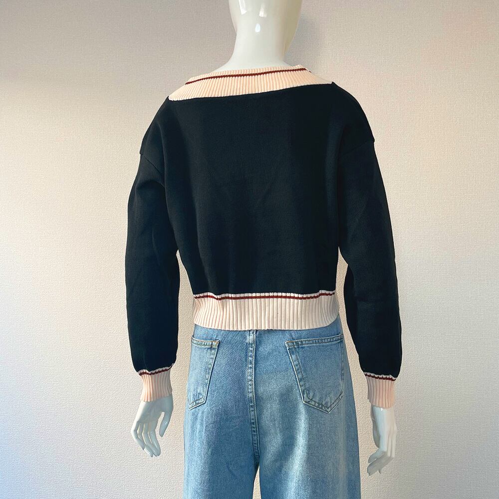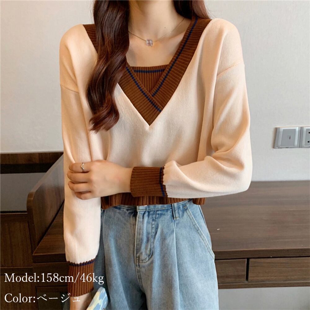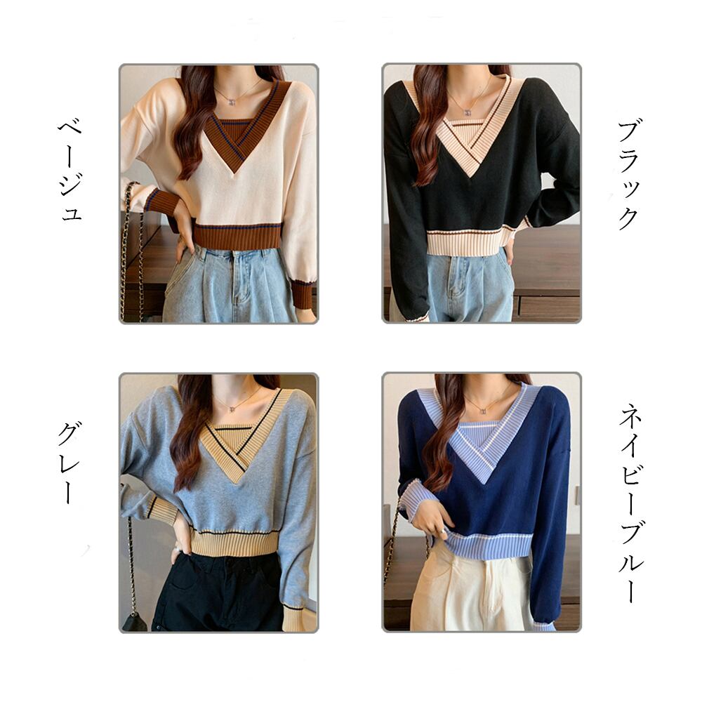 レディース ショート丈 トップス 長袖 ニットセーター カジュアル Vネック 春秋 ニットソー
