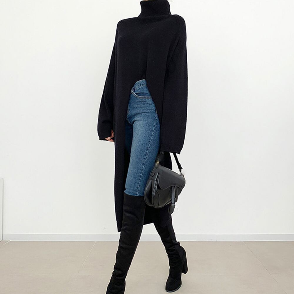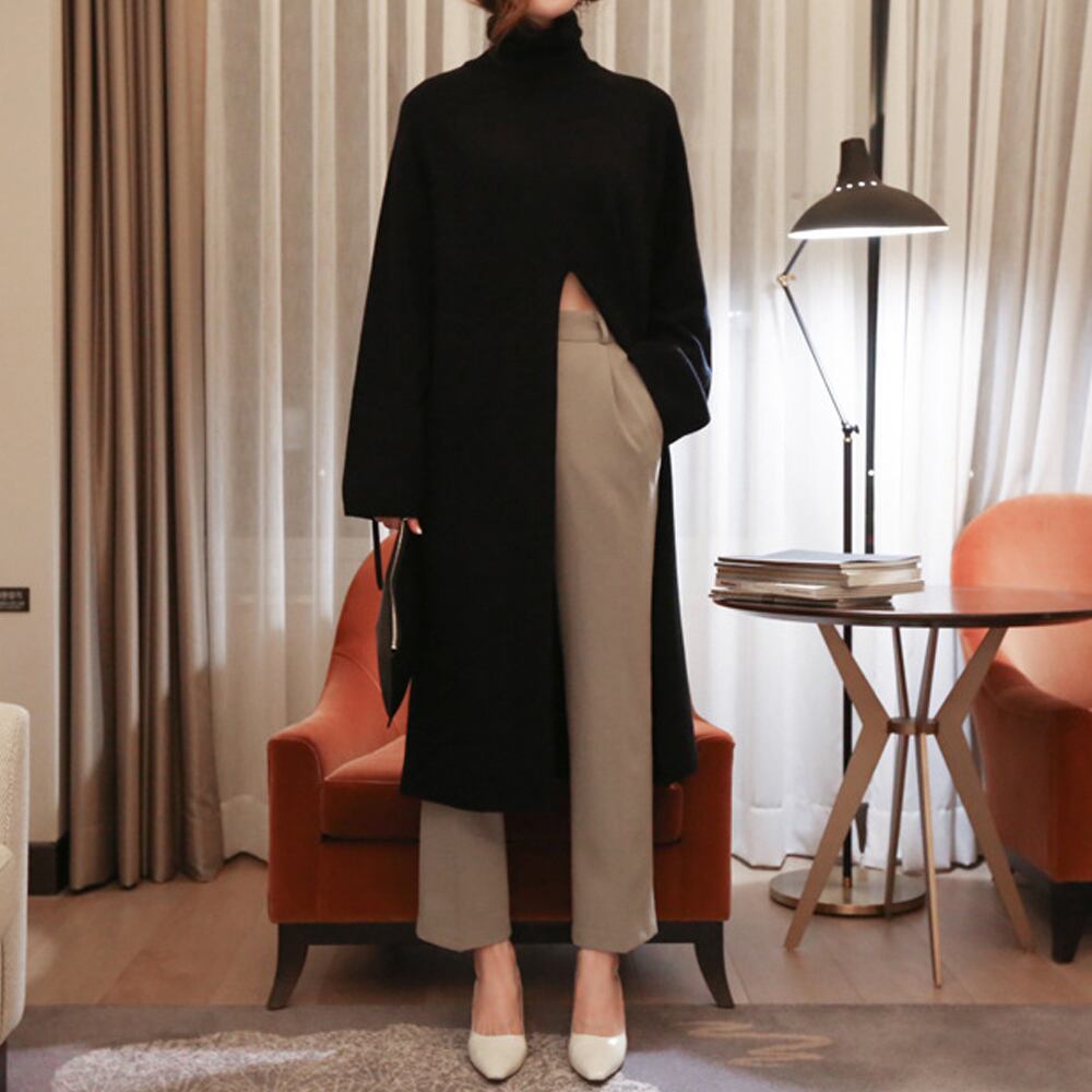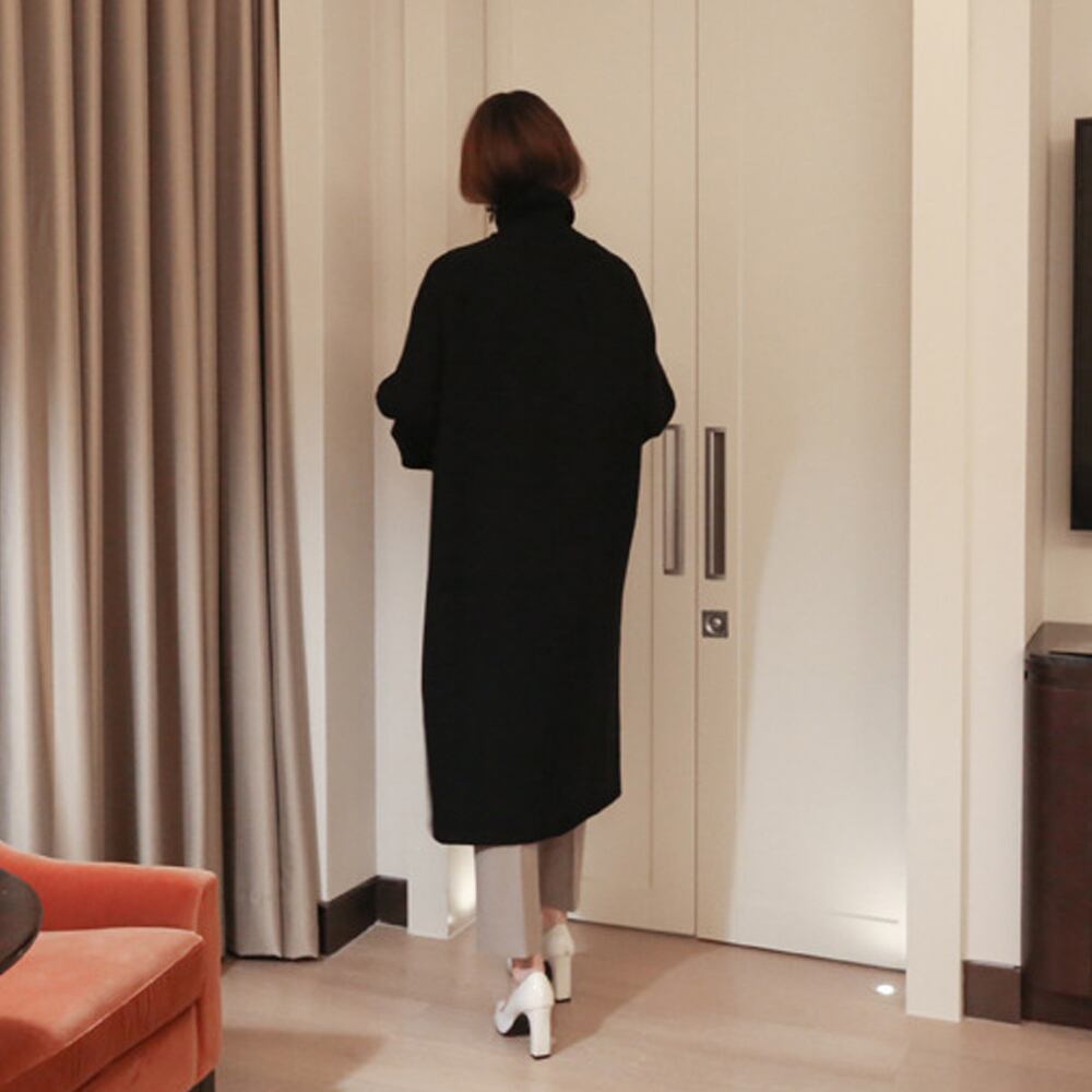 ロングワンピース タートルネック マタニティ ひざ下丈 韓国風 オシャレ 体型カバー