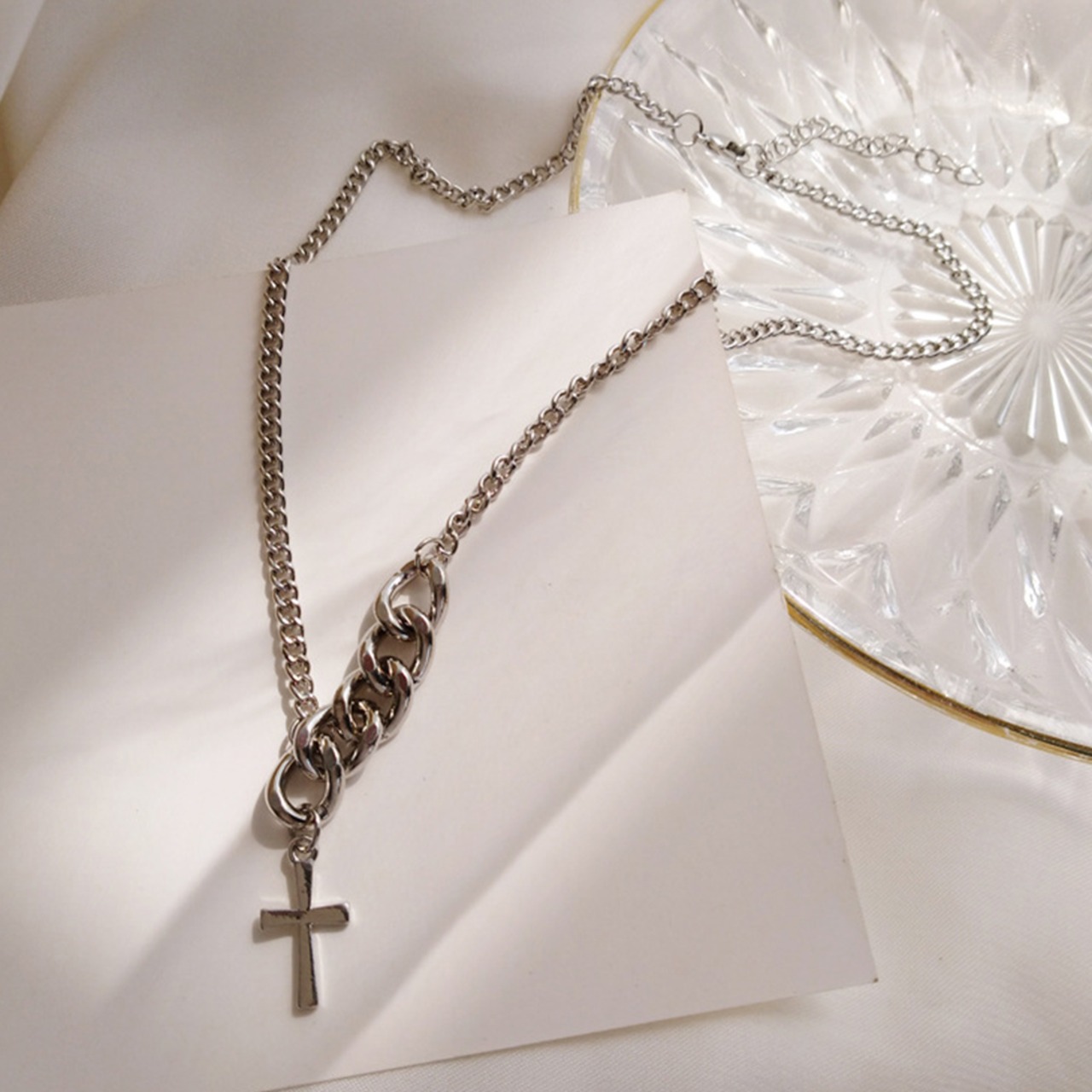チェーンサイドにクロスを組み込んだ、キュートなショートネックレス。