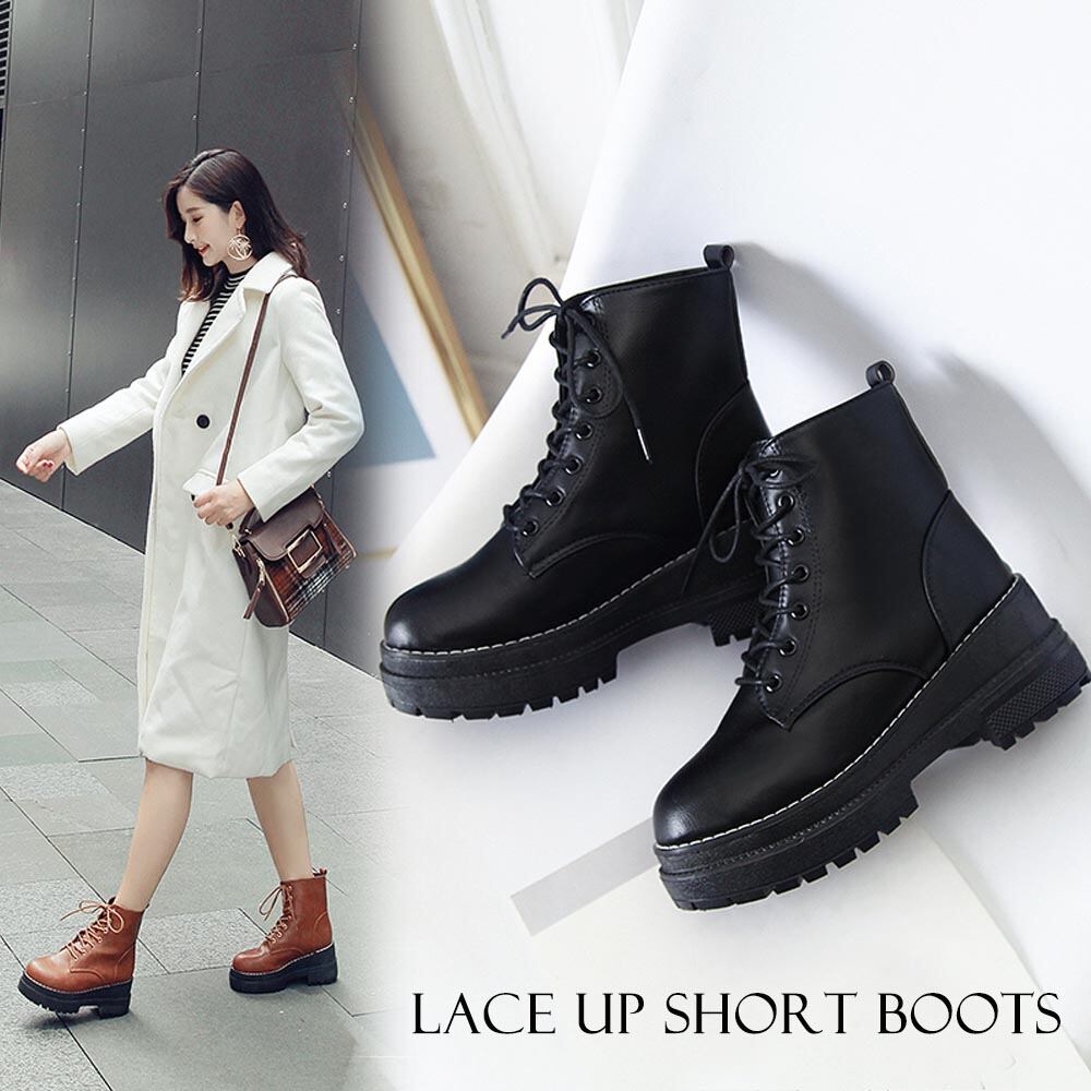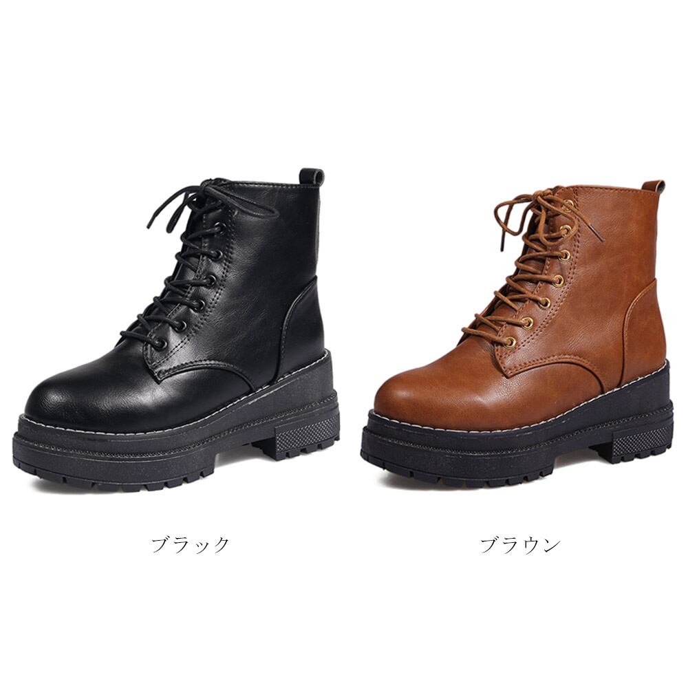 ショート ブーツ レディース シューズ 厚底 ワークブーツ レースアップ