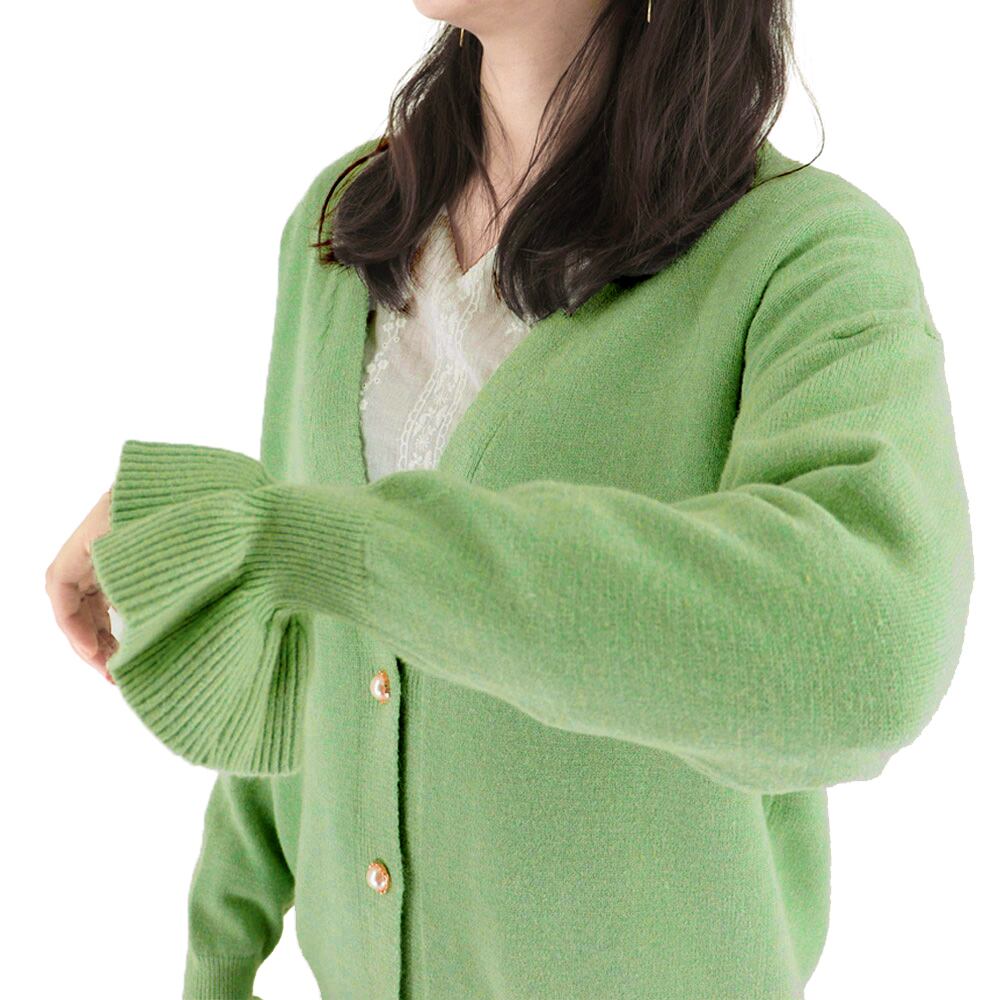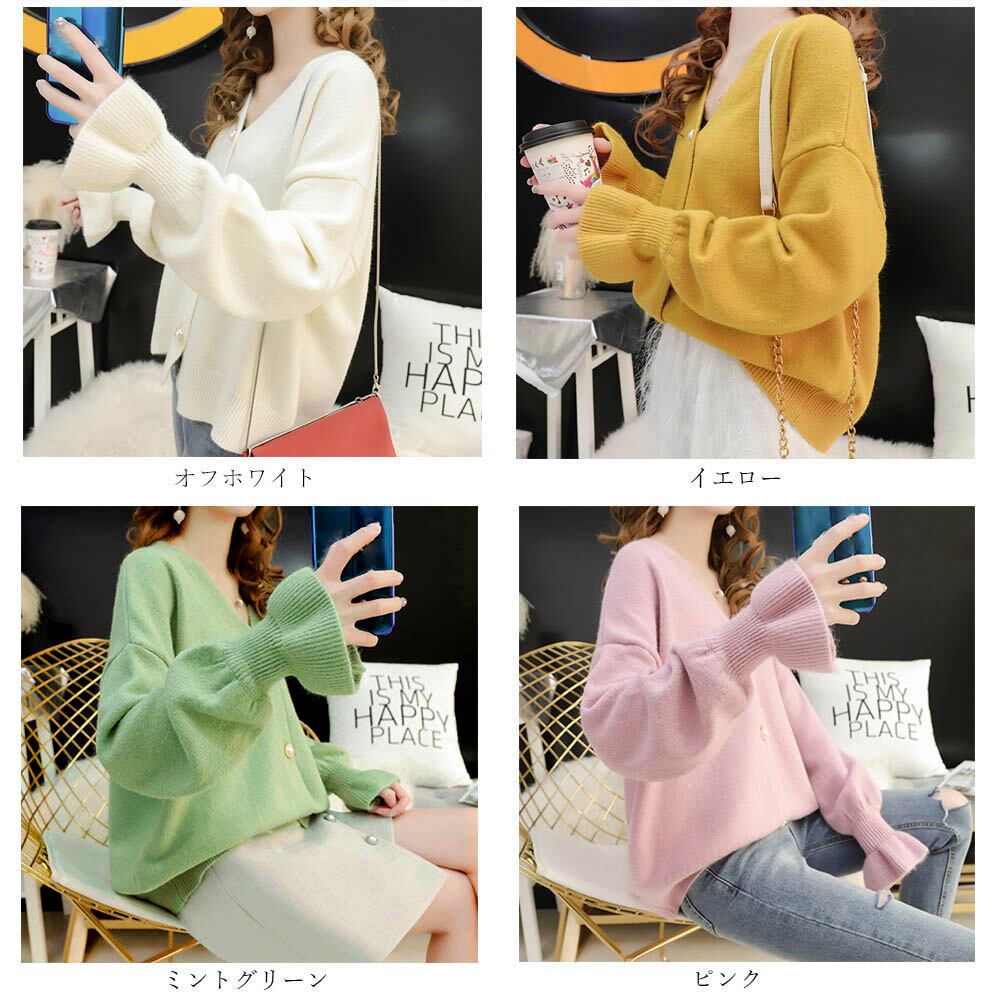レディース カーディガン ドロップショルダー キャンディスリーブ vネック ニットセーター 前開き 長袖 羽織もの 秋