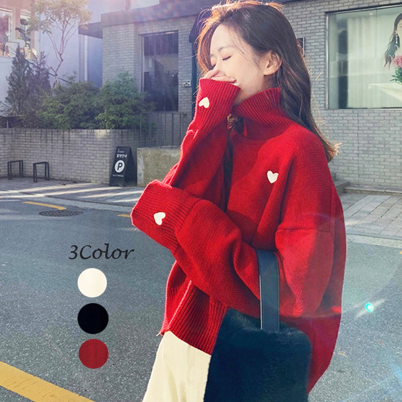 トップス タートルネック 体型カバー 無地 韓国ファッション 秋冬 大人可愛い