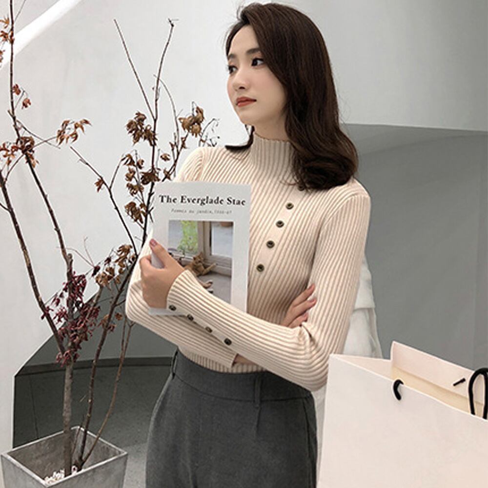 シンプルテイストな中に可愛らしいボタンがアクセント!!秋冬本命リブニット