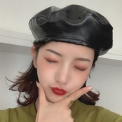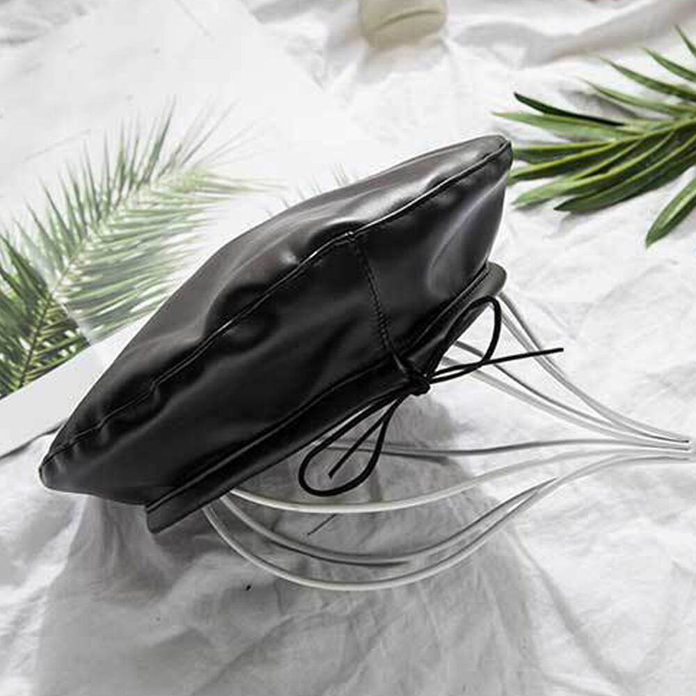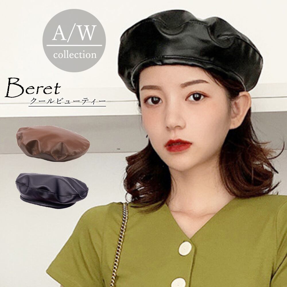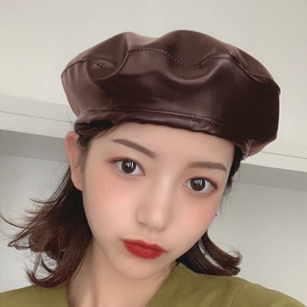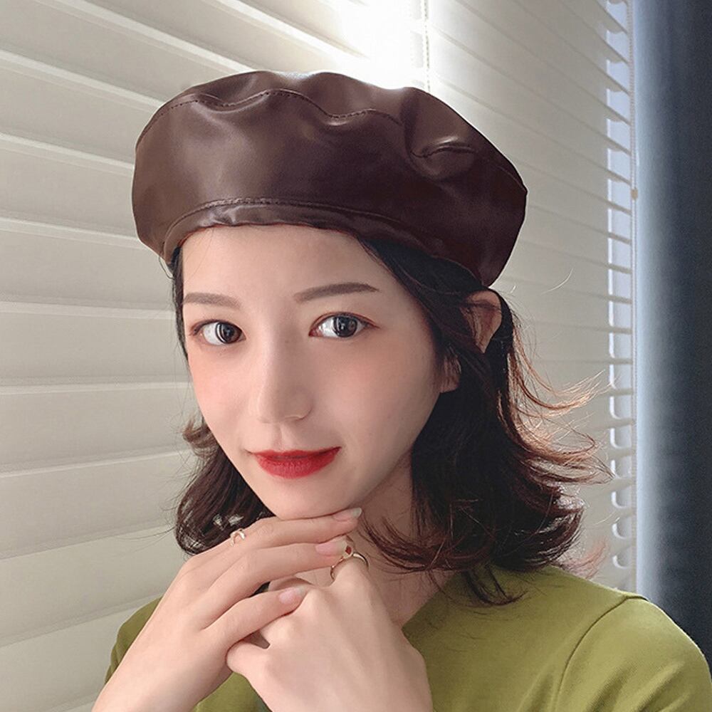 PUベレー帽 レディース帽子 秋冬 レザー帽子 無地 おしゃれ ベレー帽子