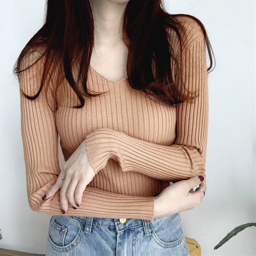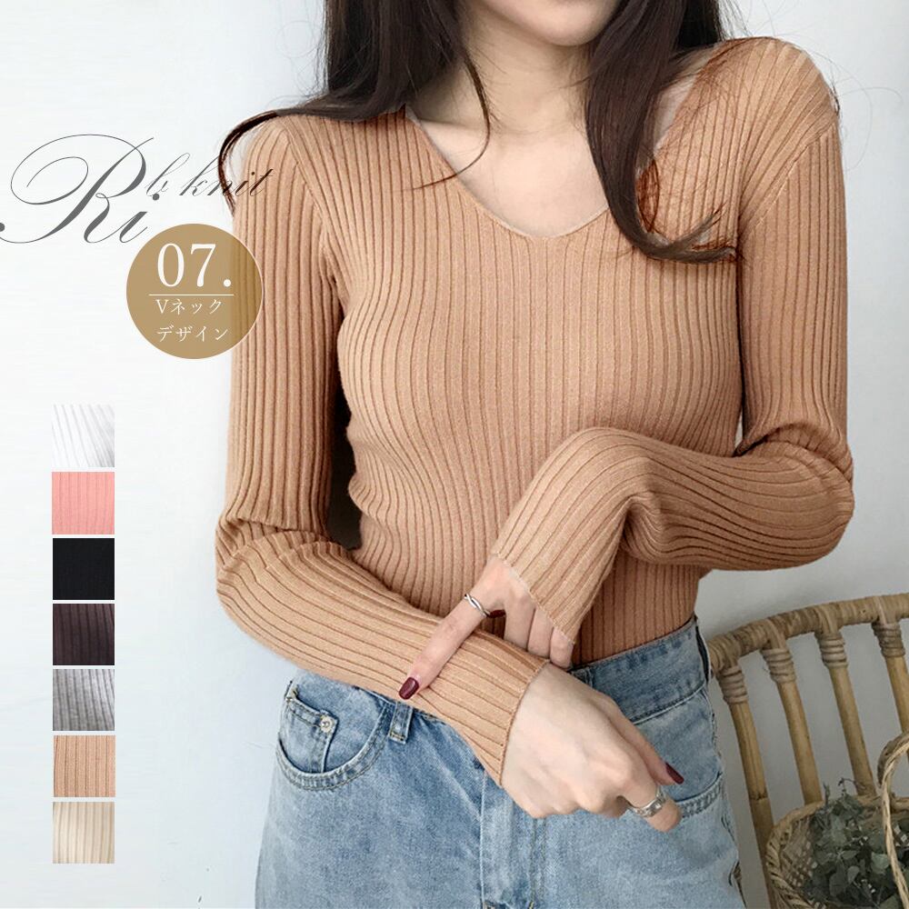 タイト リブニット vネック きれいめ ニット トップス レディース 長袖 シンプル おしゃれ