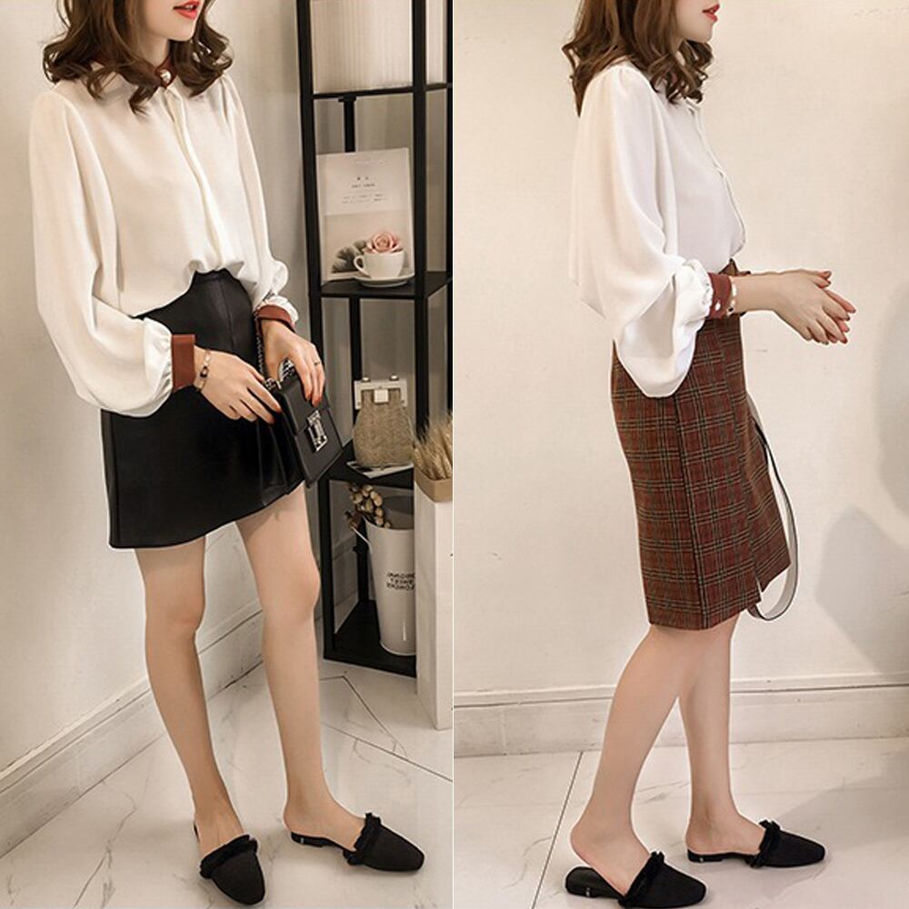上品でフェミニンなオトナ女子を演出できるスタンドカラーシフォンブラウス