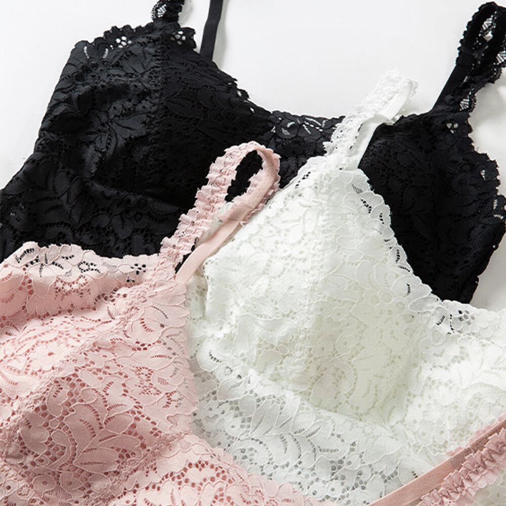 取り外し可能なパッド付きでブラ要らずに1枚で着られる総柄レースキャミソール