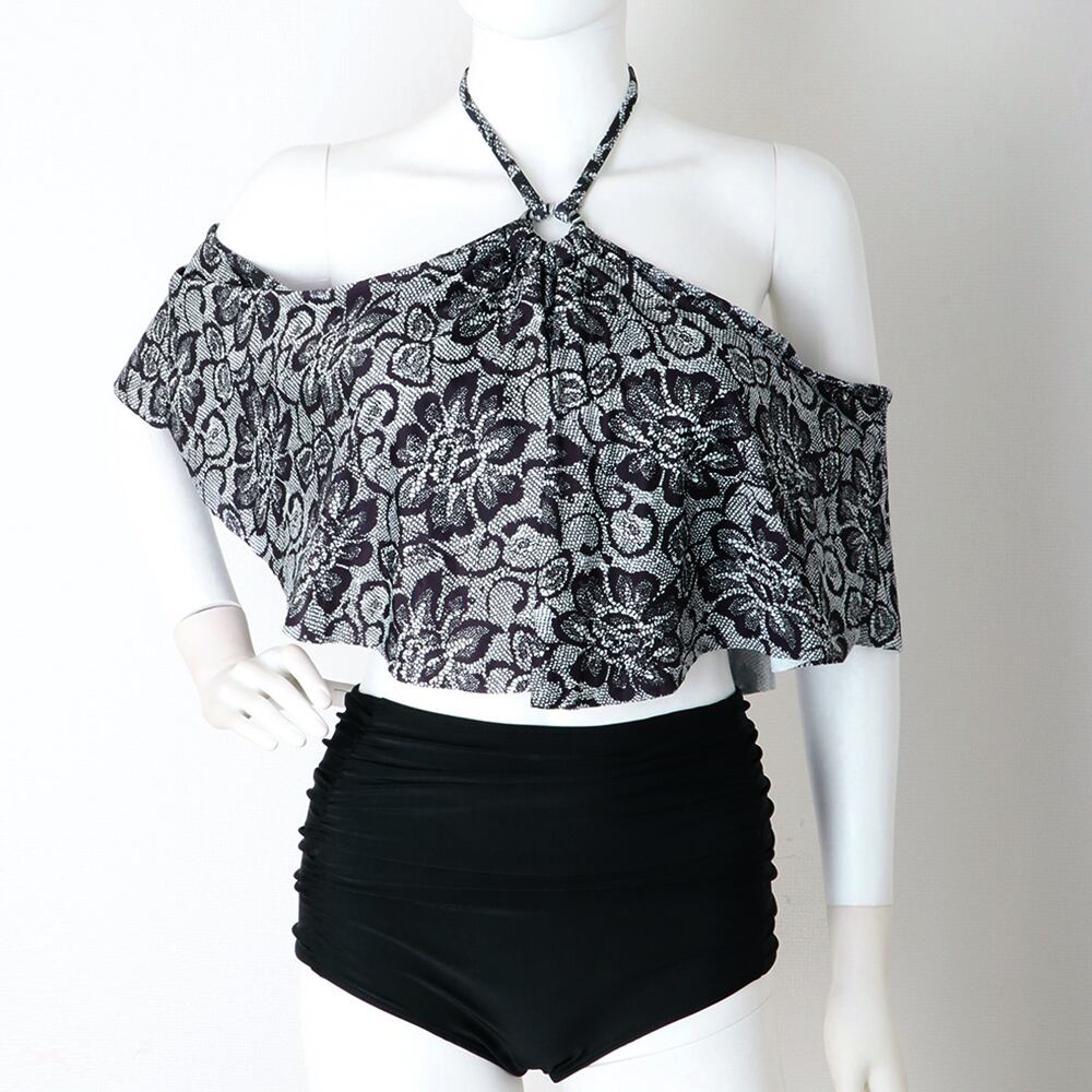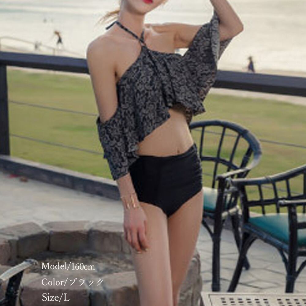 ホルターネック ビキニ レディース セクシー フレア 水着 花柄 ビキニ 2点セット セパレート ハイウエスト