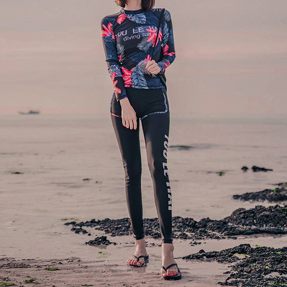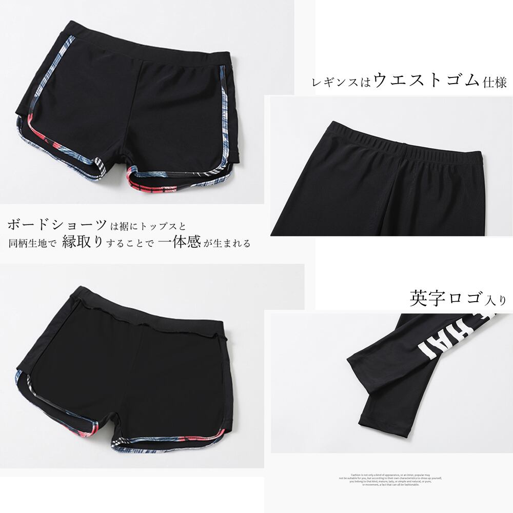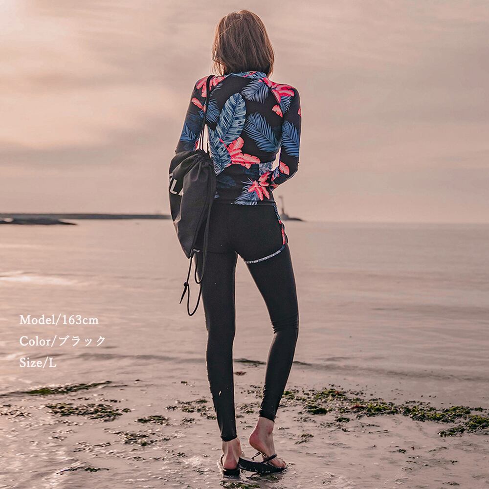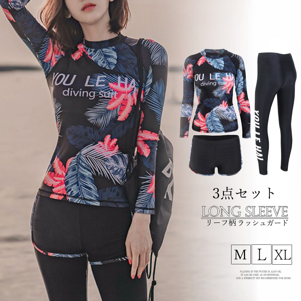 長袖トップスとボードショーツとレギンスのレディース水着3点セット