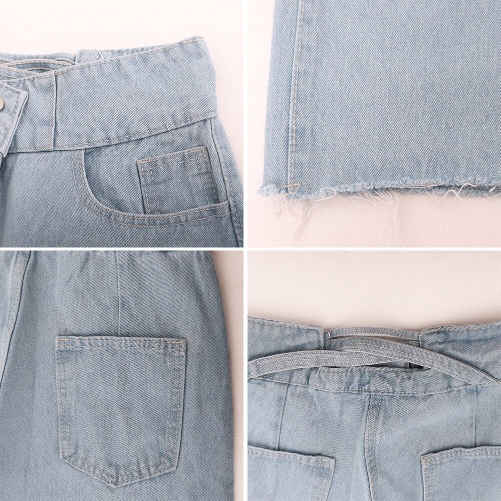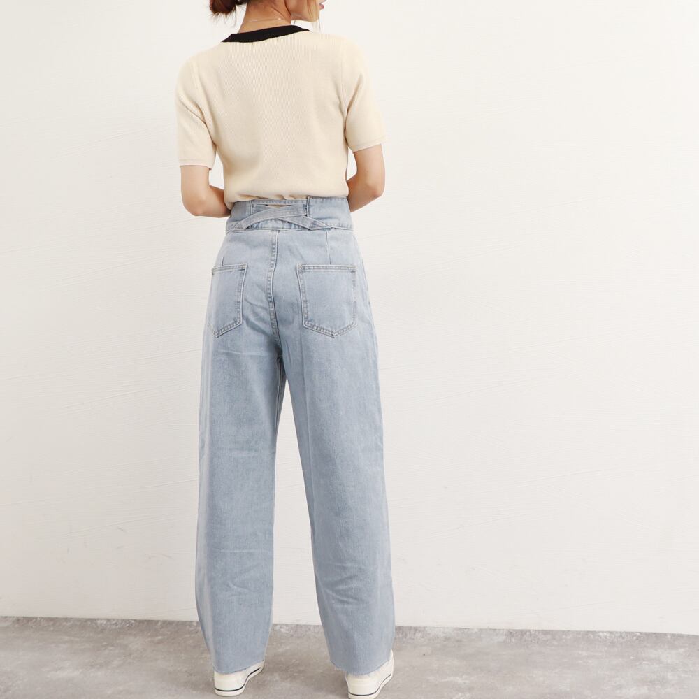 着やせボトムス美脚 バッククロスデニム オルチャン お洒落
