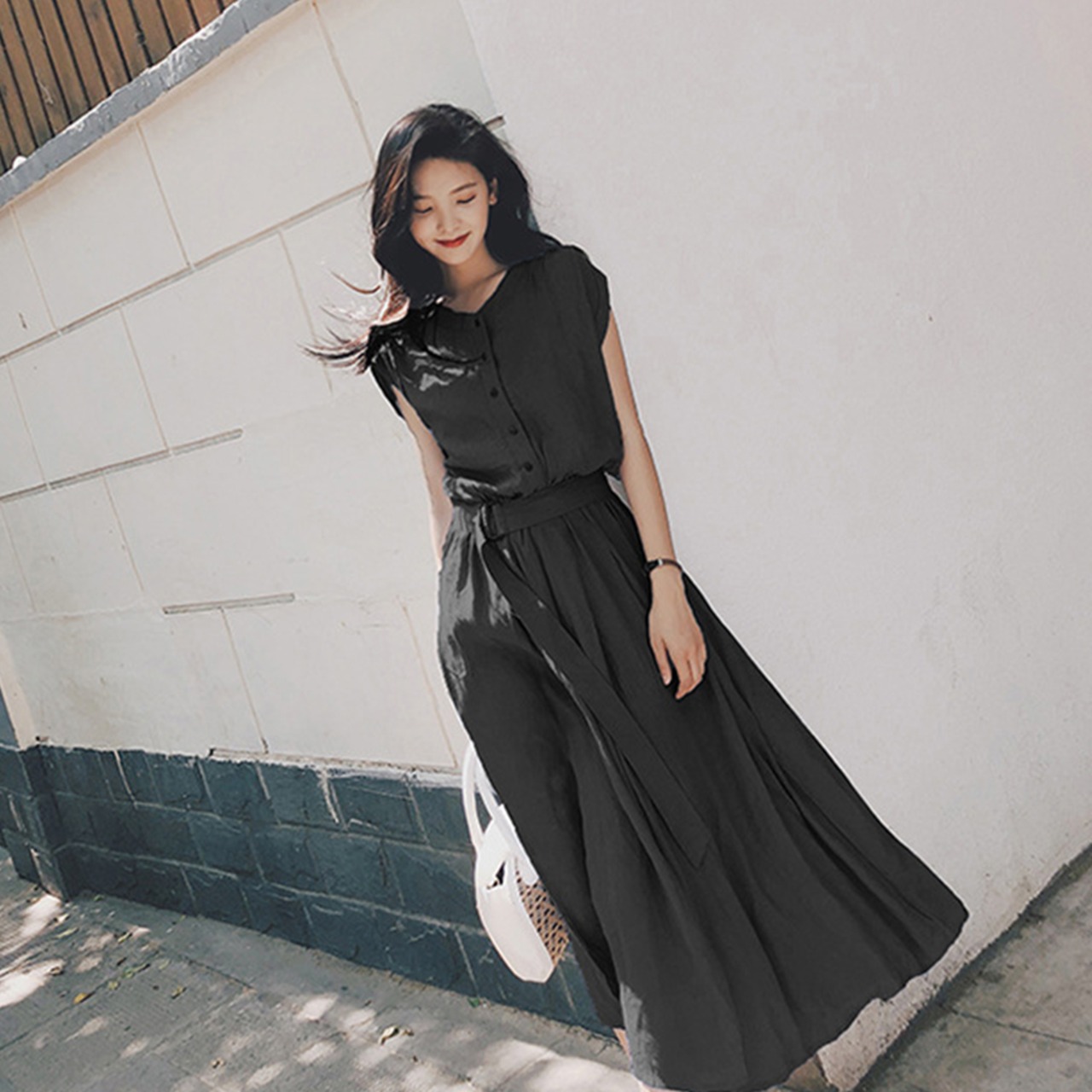 シャツワンピース レディース ベルト付き ロングワンピース ノースリーブ 着やせ シフォン ワンピース 体型カバー