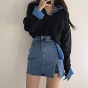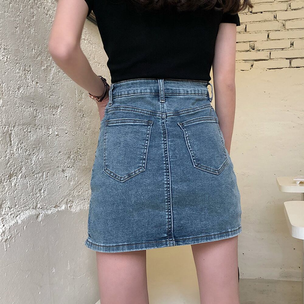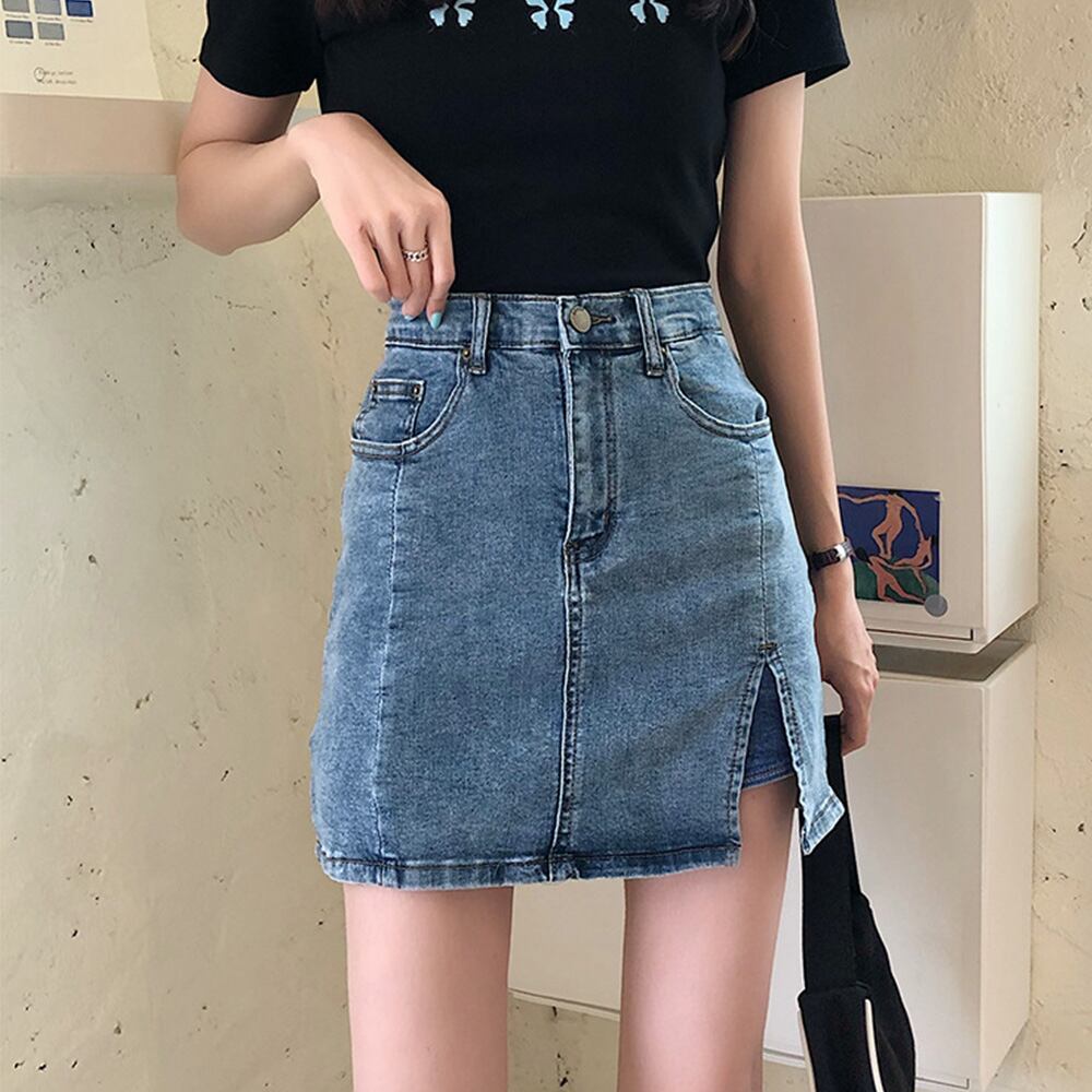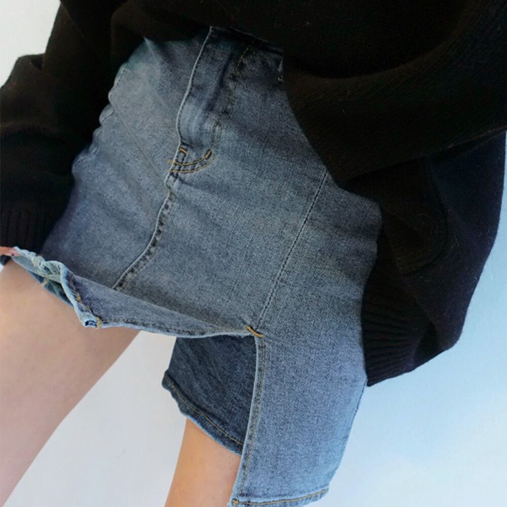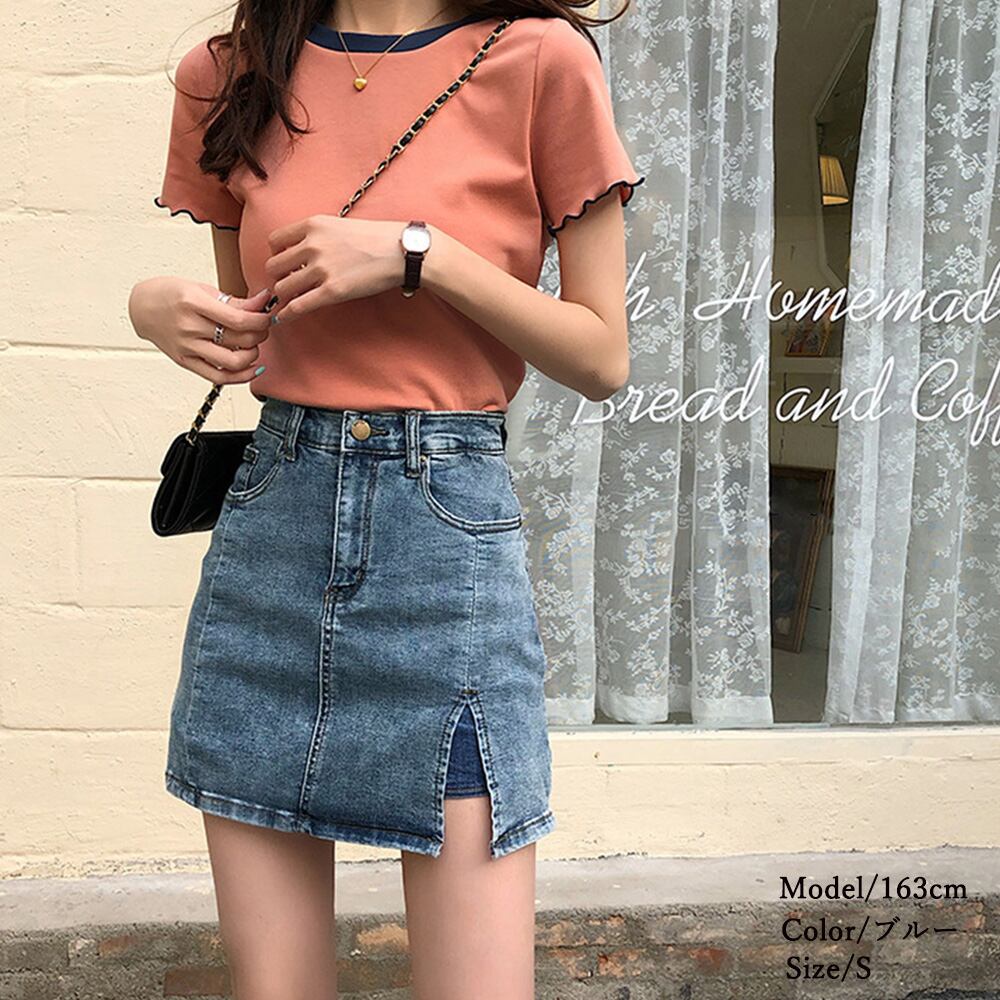 韓国 ショート丈デニムスカート スリット ハイウエストタイトスカート セクシー 着やせ 細見えボトムス オルチャン 夏服