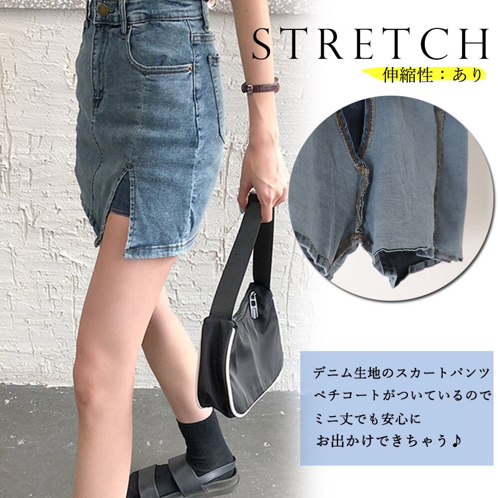ミニ丈 キュロットスカート レディース デニム スリット入り ショート丈