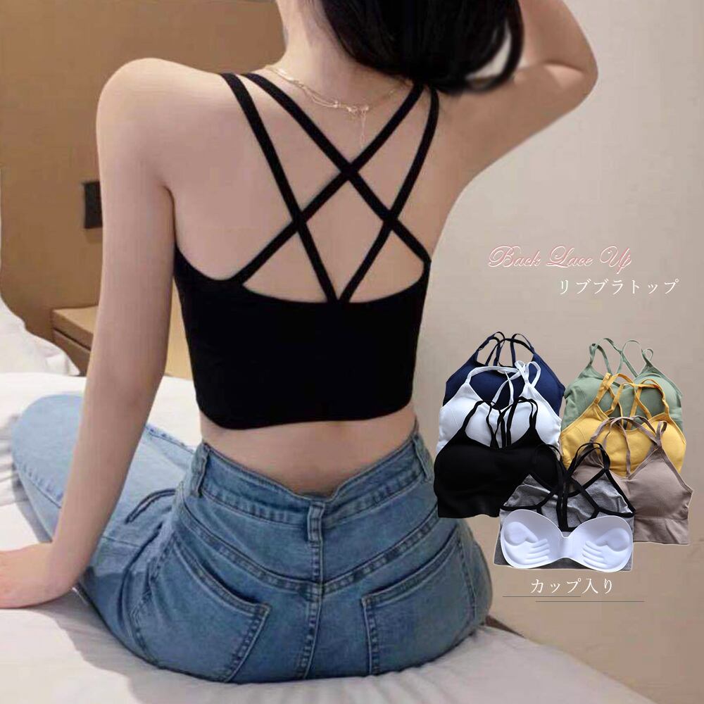 カップ入りノンワイヤーのバックレースアップリブブラトップ