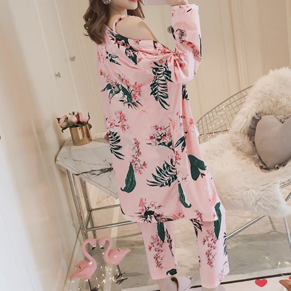 薄手寝巻き 可愛い 花柄パジャマセット 上下セットガウン付