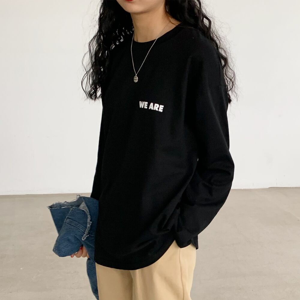 Tシャツ レディーストップス 長袖カットソー 韓国 英字ロゴ 体型カバー