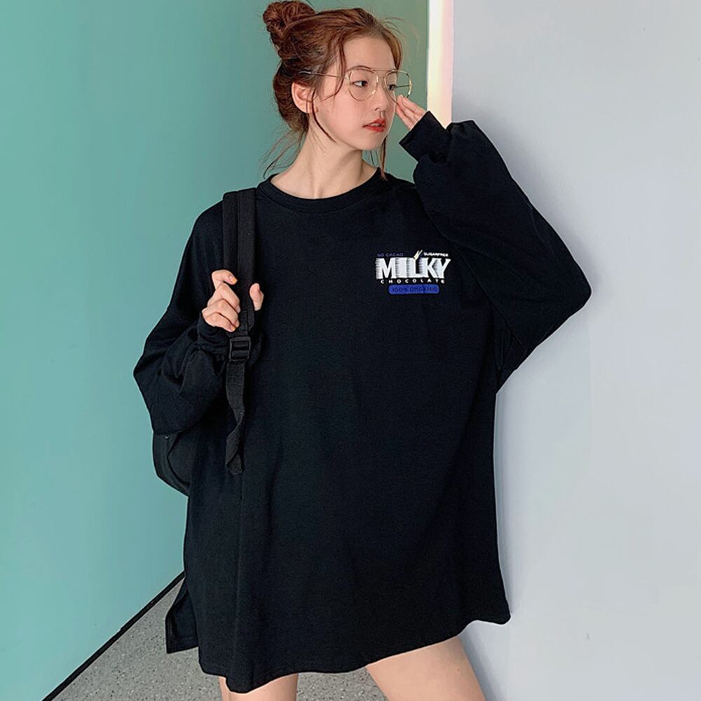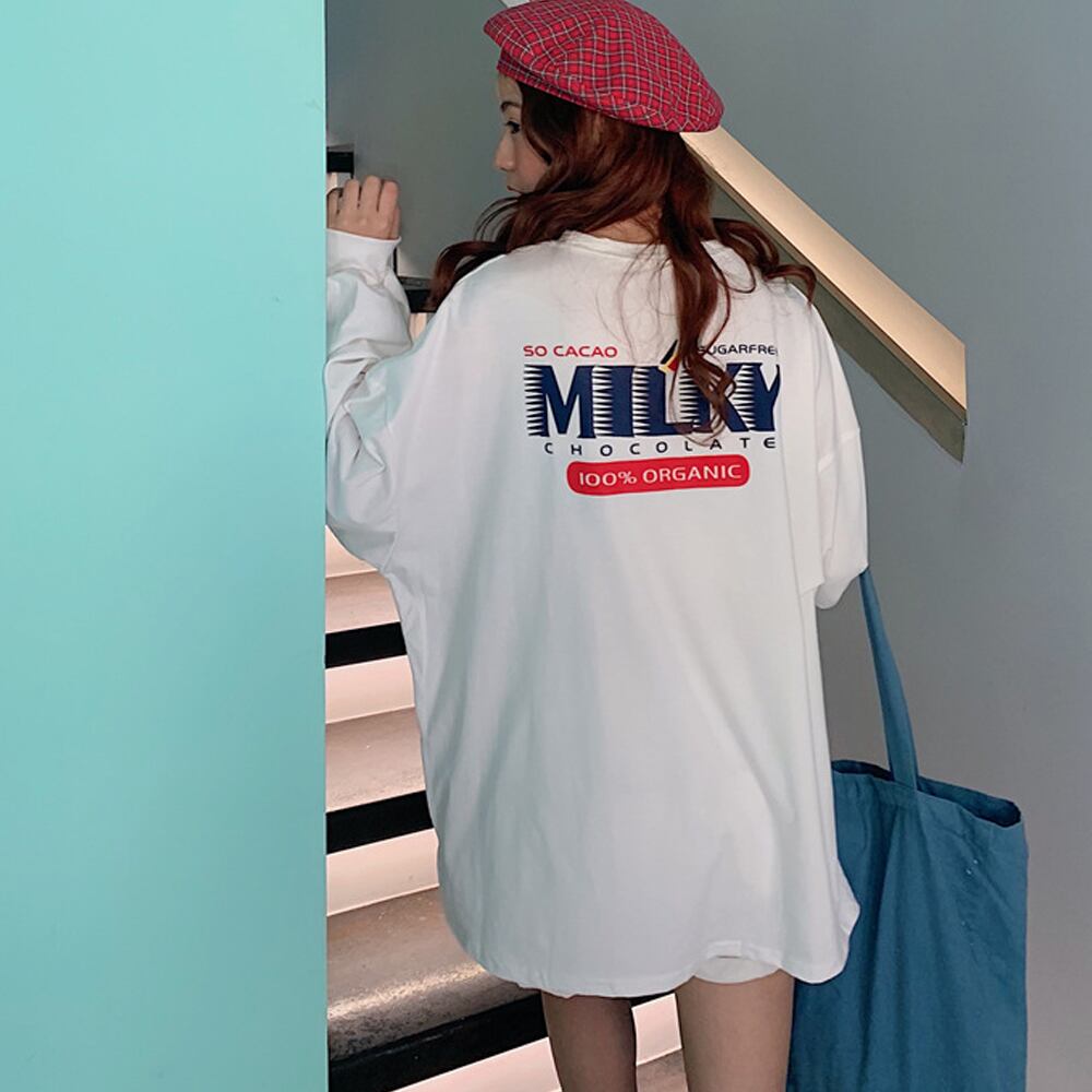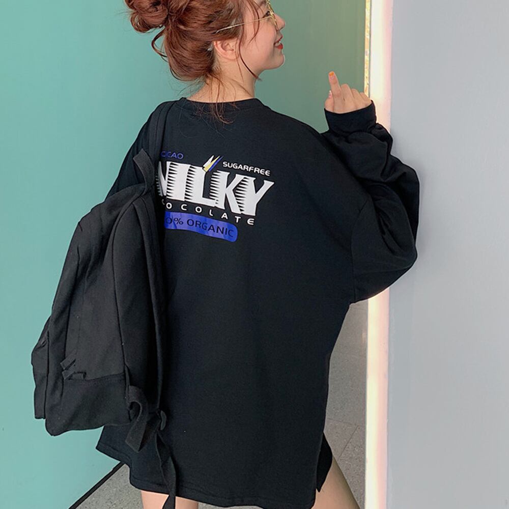 Tシャツ レディーストップス 長袖 カットソー 体型カバー プリント