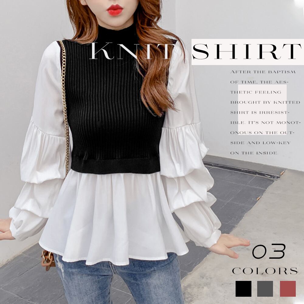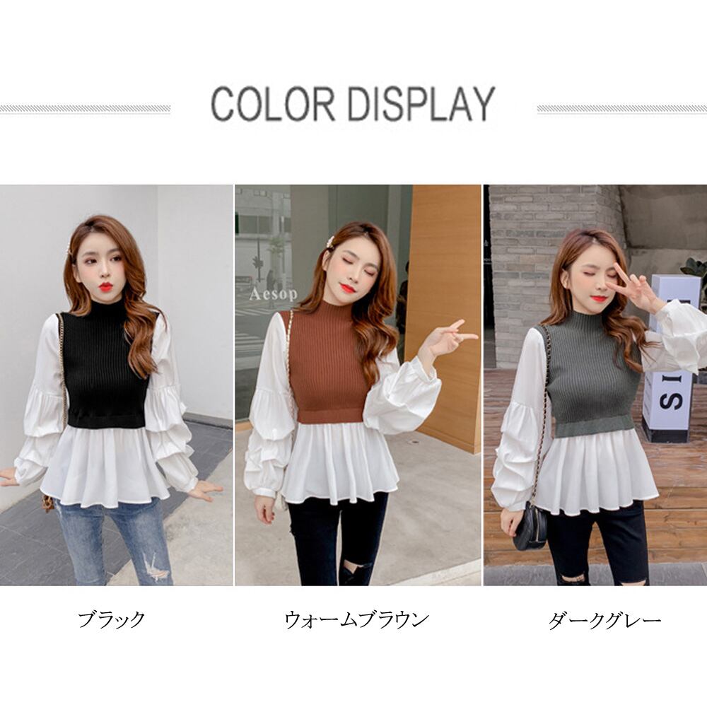 ドッキング ニットブラウス レディース レイヤードニットソー 重ね着風