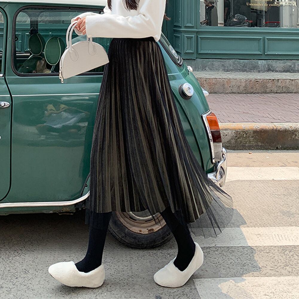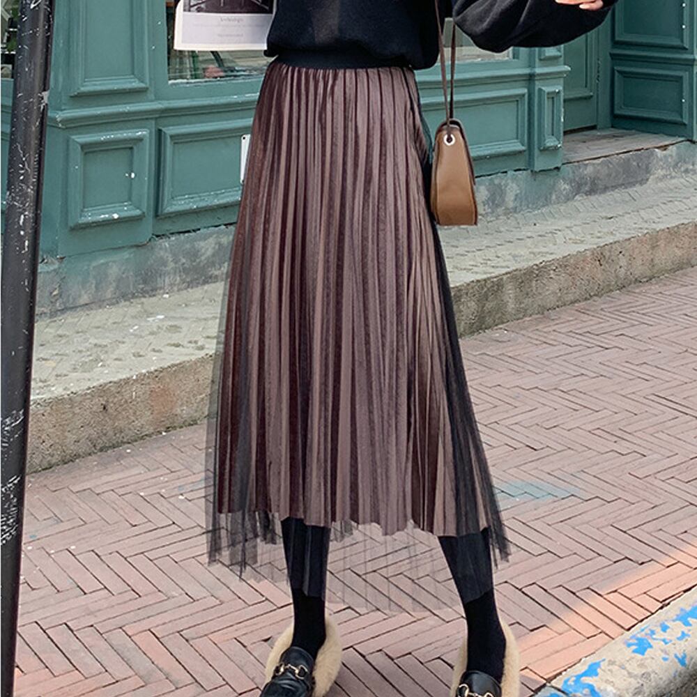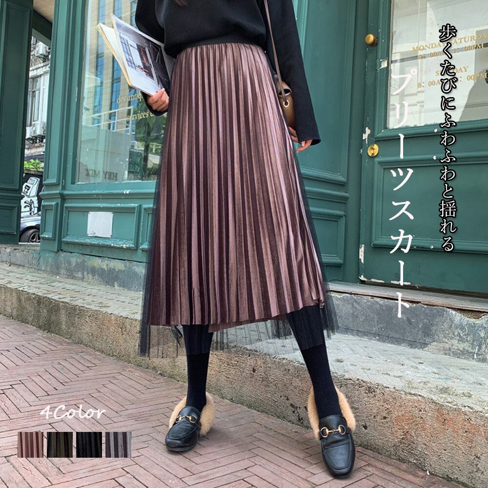 プリーツスカート レディース ベロア チュールスカート ロングスカート