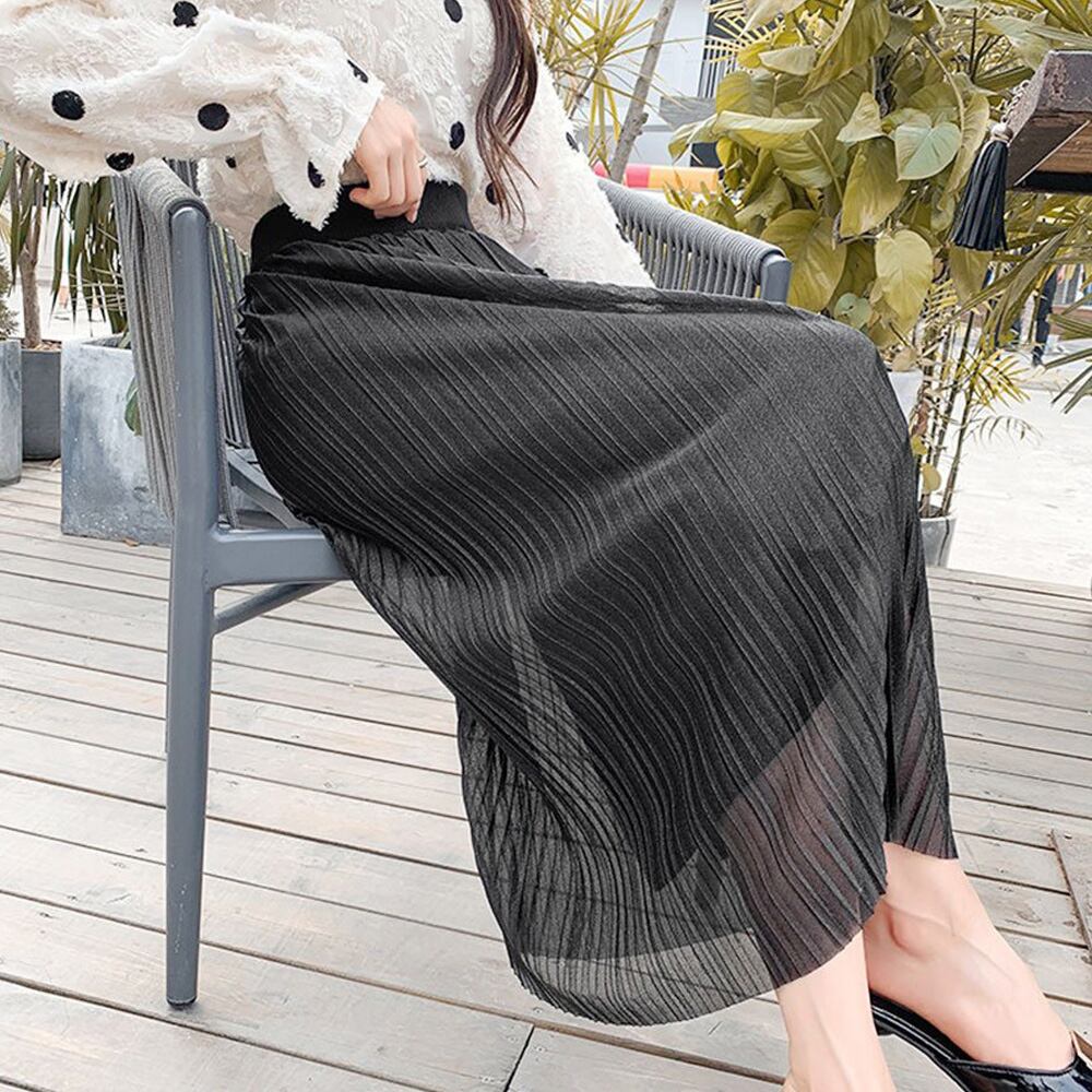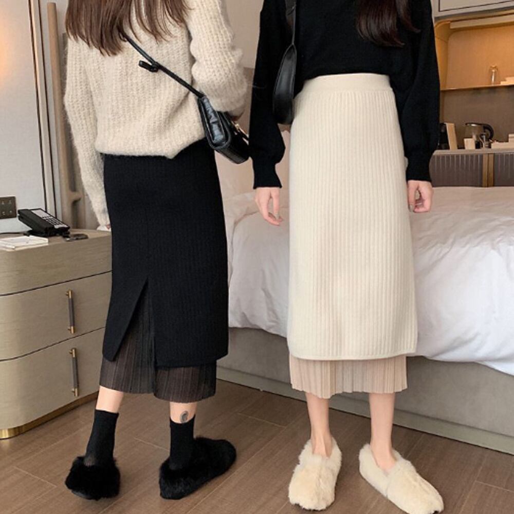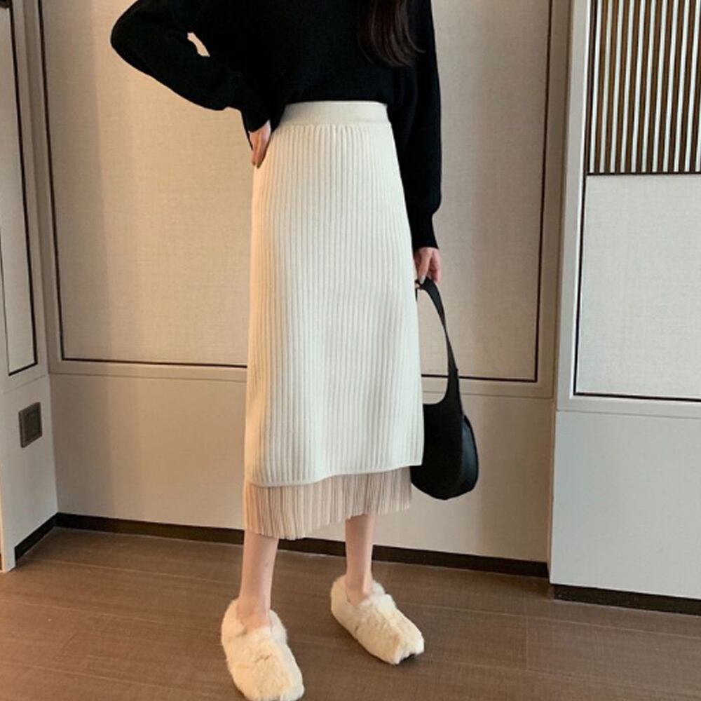ニット生地にチュールを重ねた異素材ロング丈リバーシブルスカート