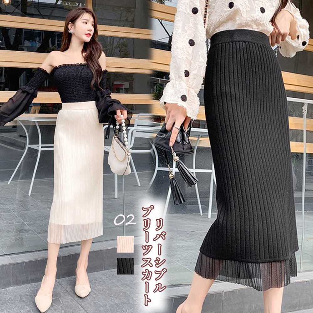 リバーシブル スカート レディース プリーツスカート スリット入り ボトムス