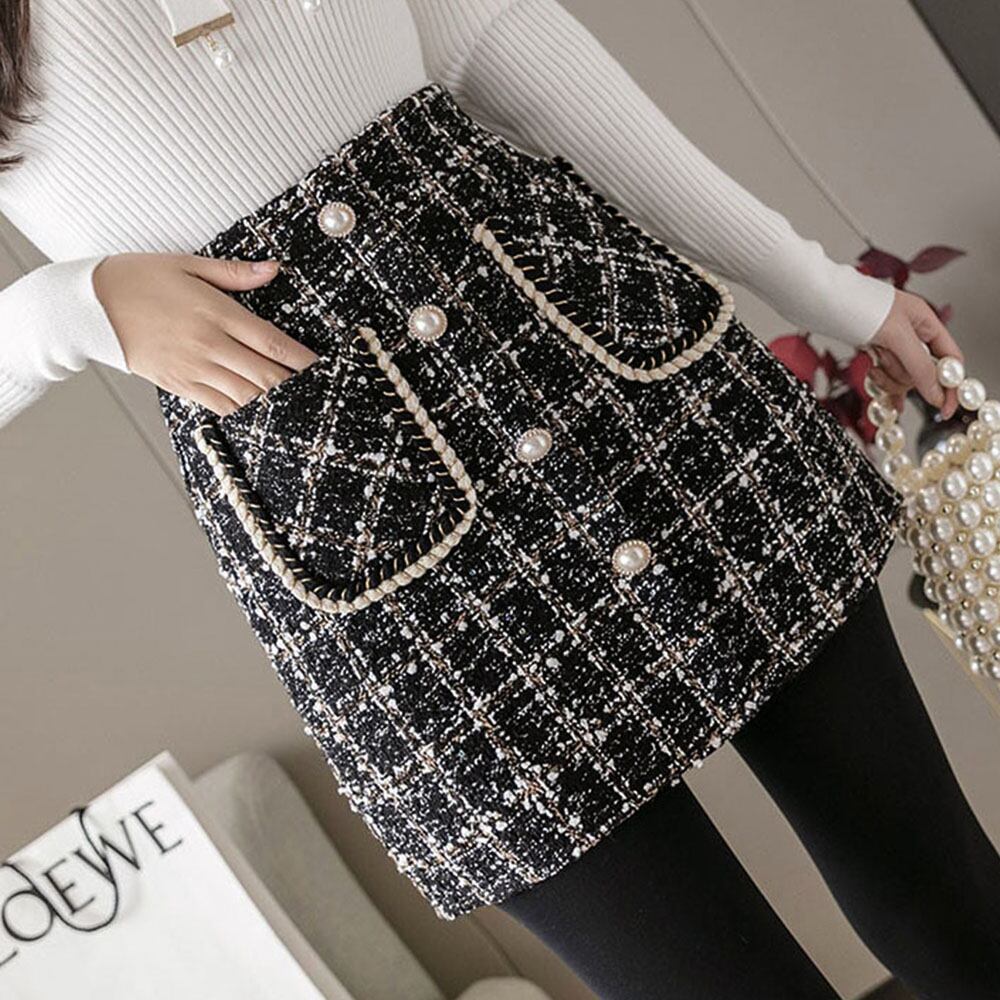 スタイルがよく見える台形シルエットなツイード風ミニスカート