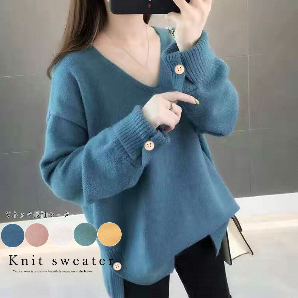 vネックニットトップス レディース 秋冬