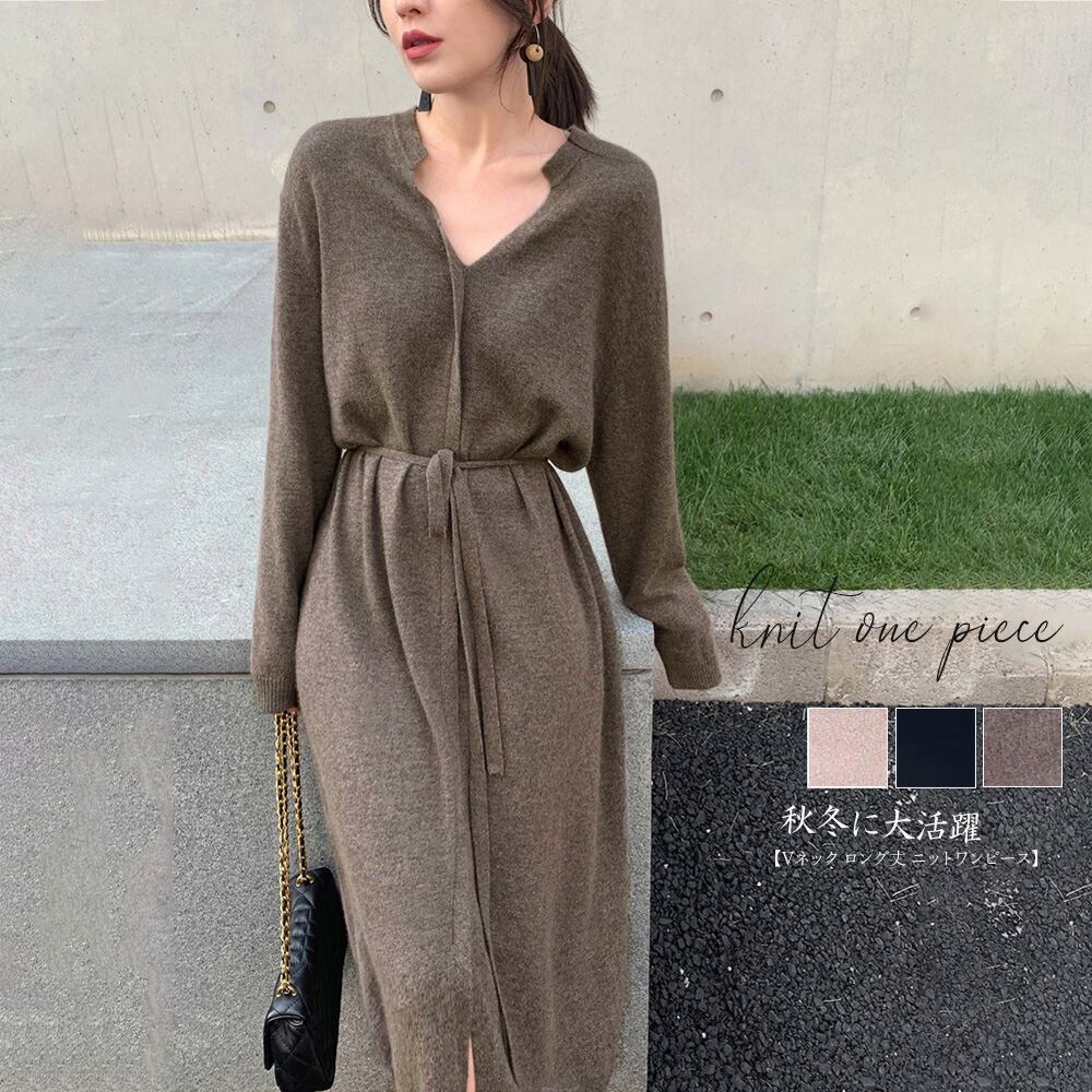 キーネック ニットワンピース レディース セーターワンピース 暖かい