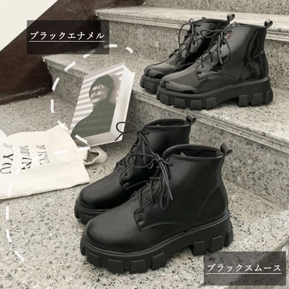 ショートブーツ 黒 おしゃれ シューズ 美脚編み上げブーツ