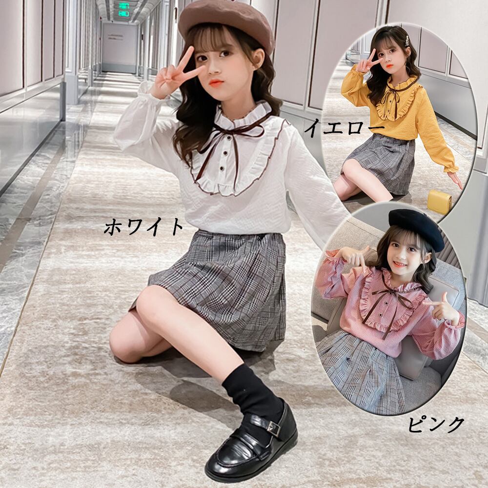 キッズ セットアップ 女の子 シャツ スカート 2点セット 長袖 おしゃれ