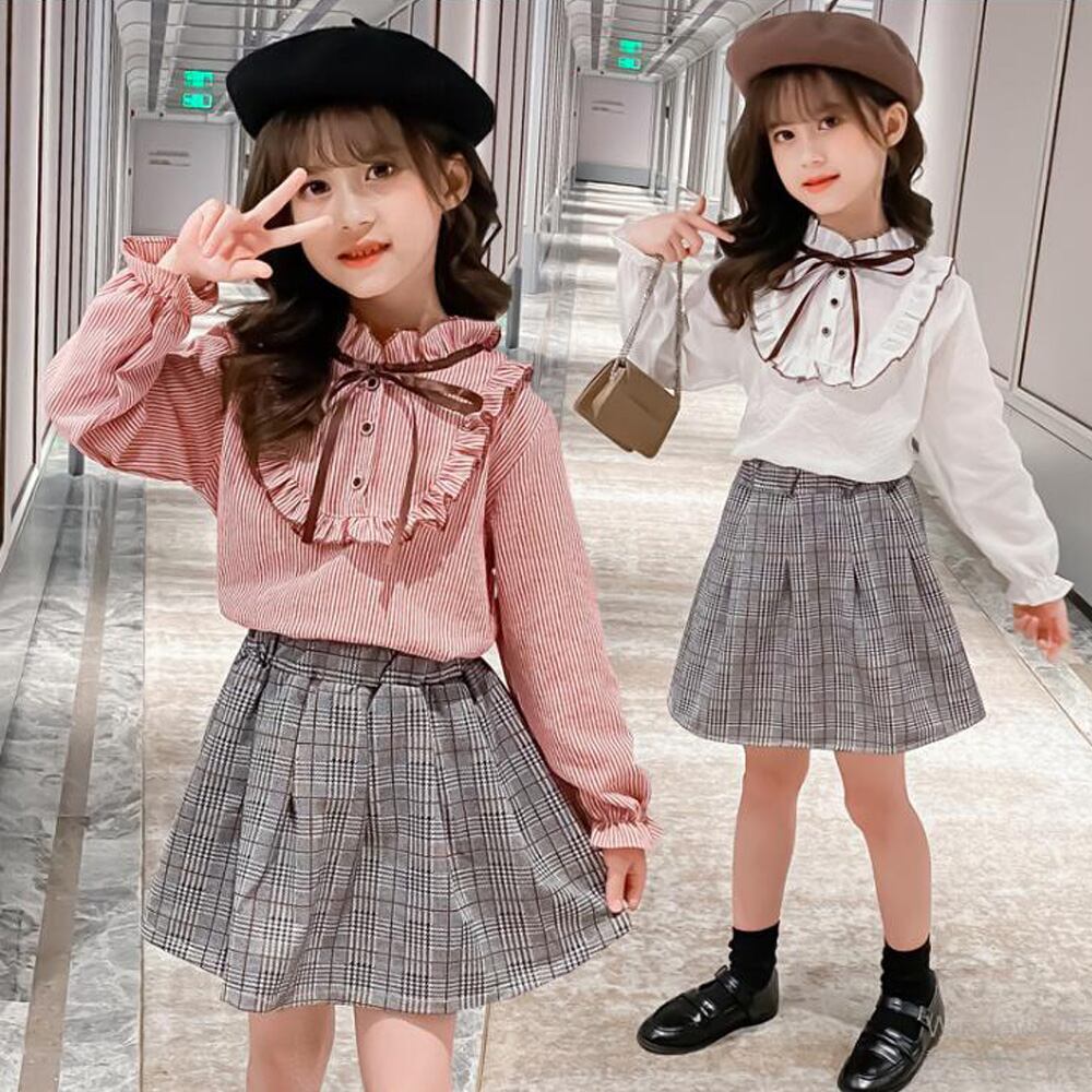 おしゃれなガールズシャツ&スカートの2点セットアップが登場!