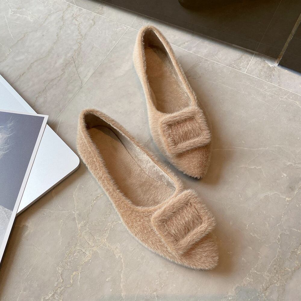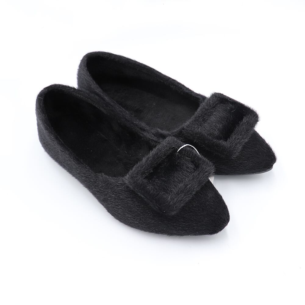 パンプス レディース 靴 シューズ 浅口 綿毛 ぺたんこ靴 もこもこ温かい