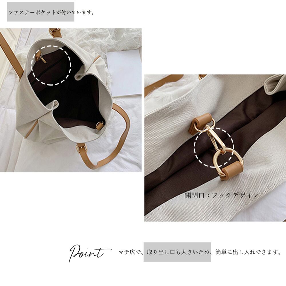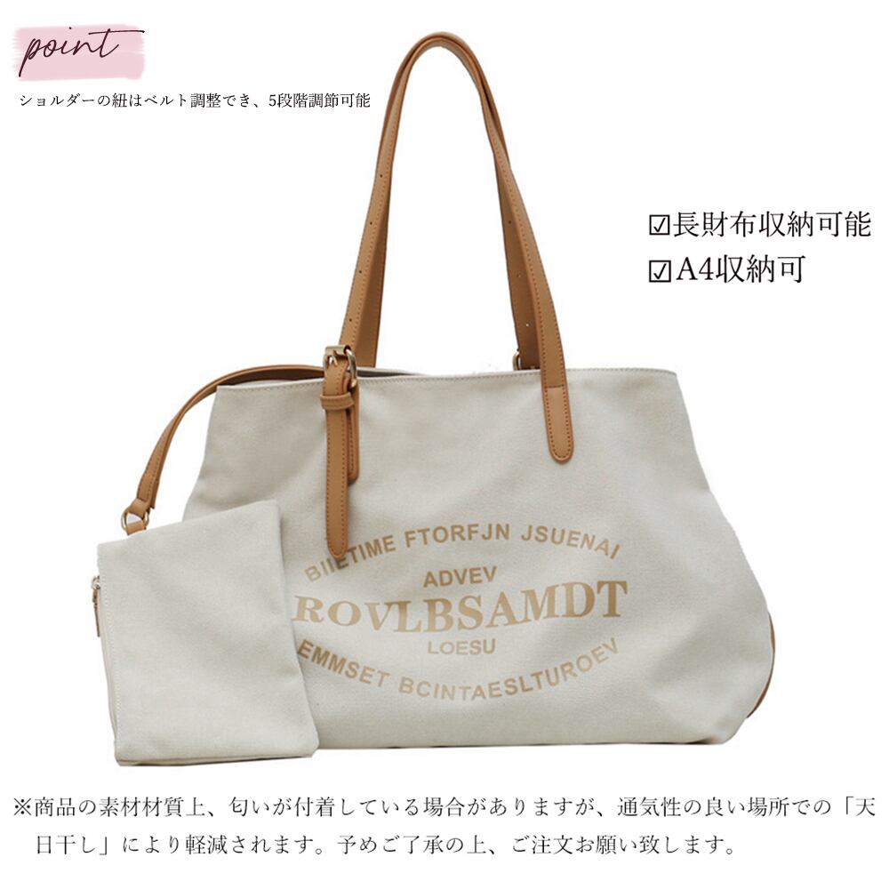 キャンバスバッグ レディース ポーチ付き トートバック 大きめ 肩掛け