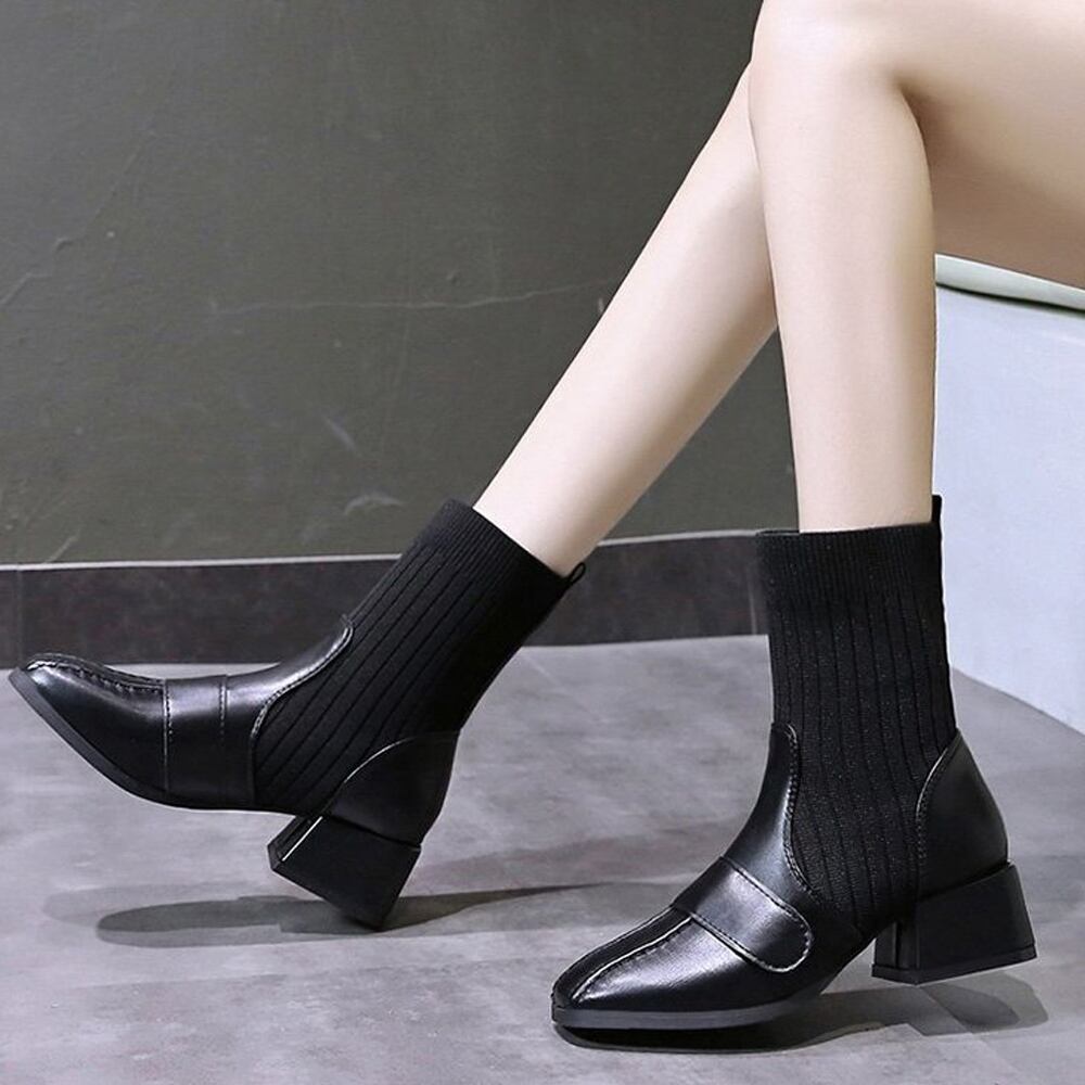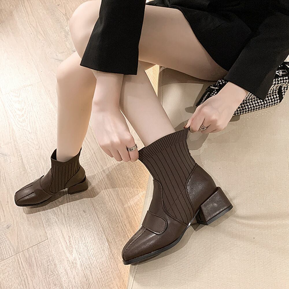 ソックス風ブーツ レディース チャンキーヒール ショートブーツ 痛くない