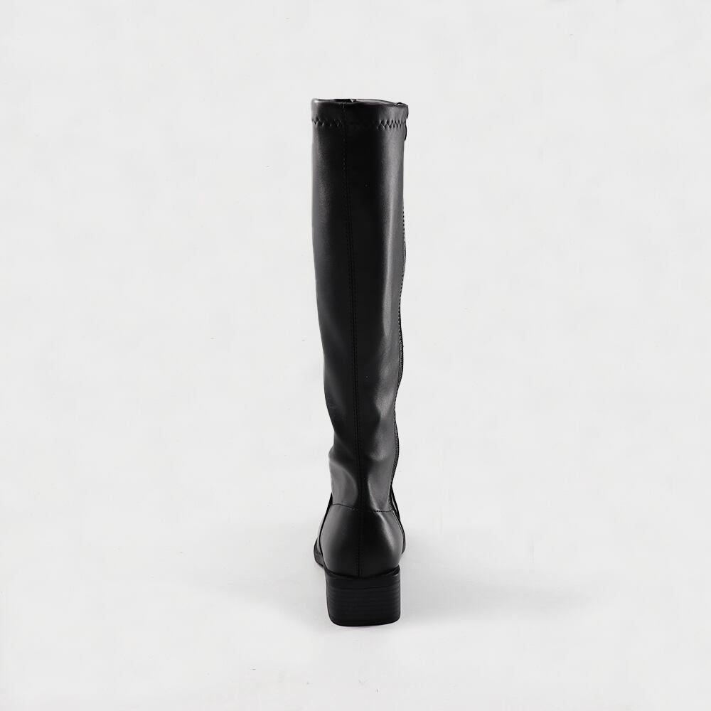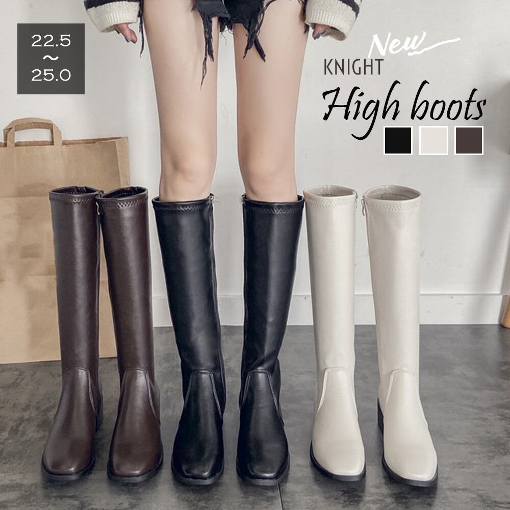 ニーハイブーツ レディース ロング丈 スクエアトゥ ローヒール 合皮 レザー調