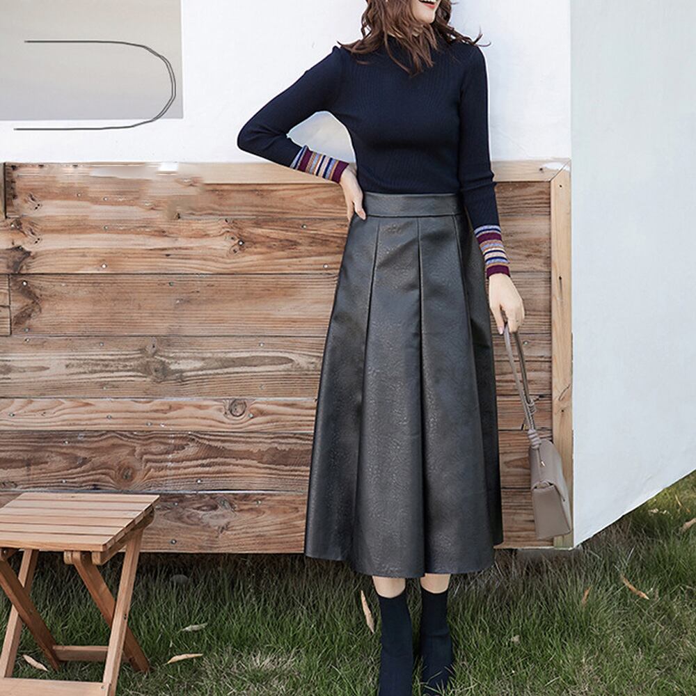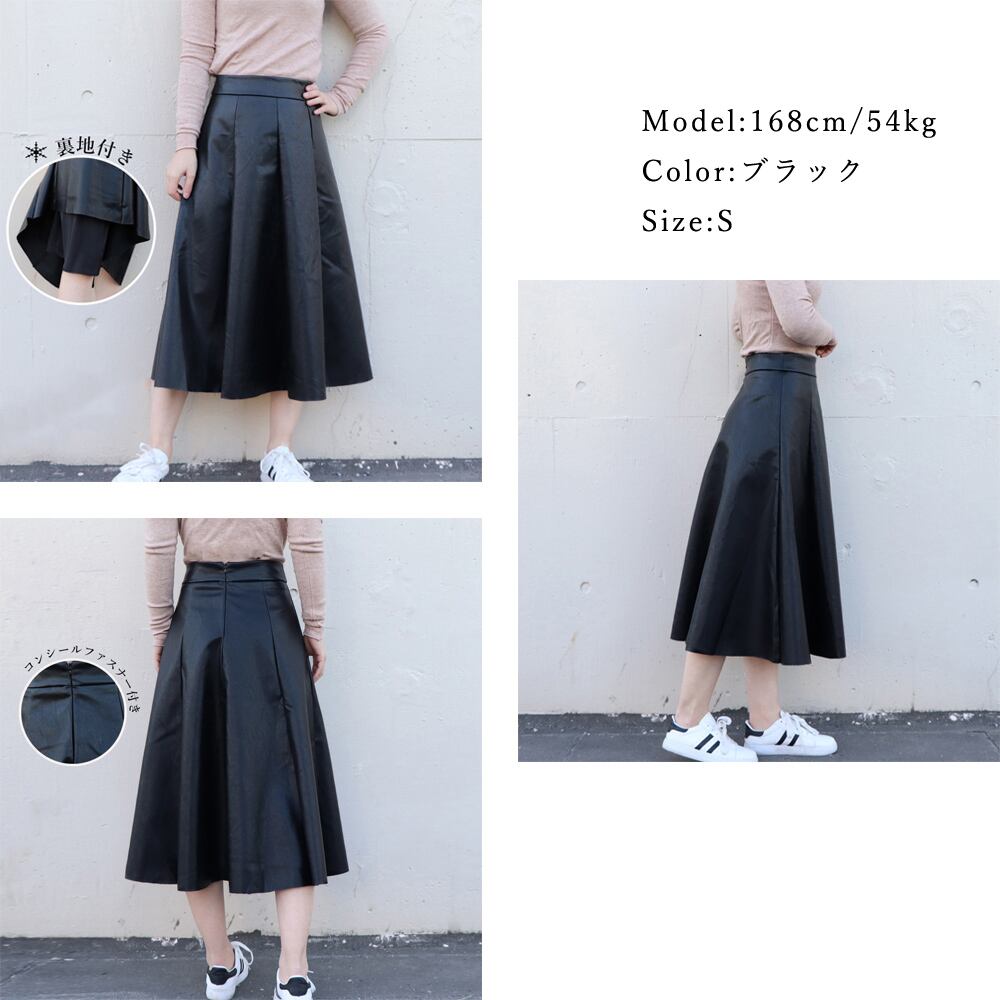 美シルエットが叶うフェイクレザーのフレアスカート