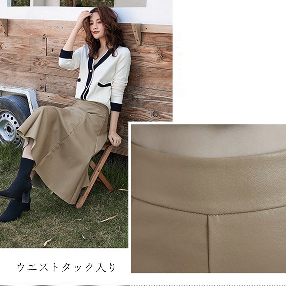 フェイクレザースカート レディース フレアスカート エコレザー ロングスカート
