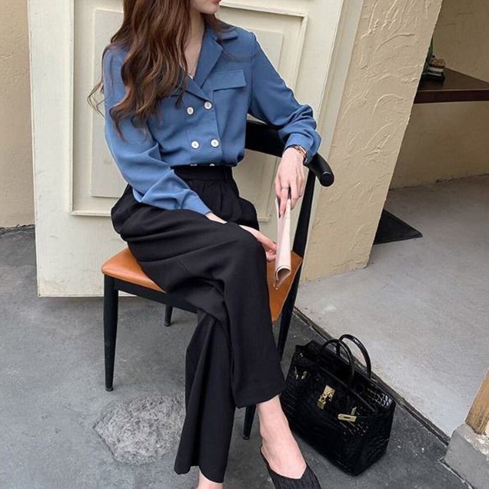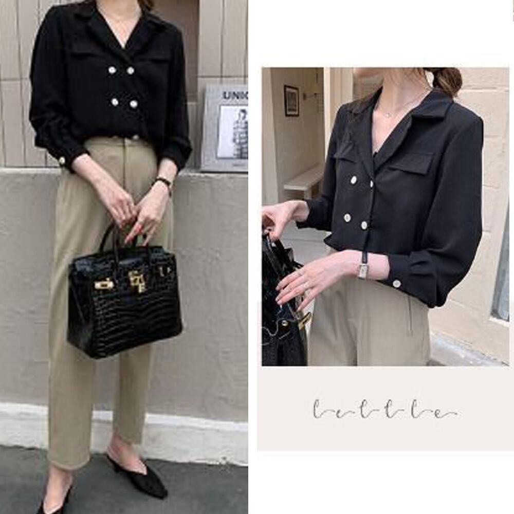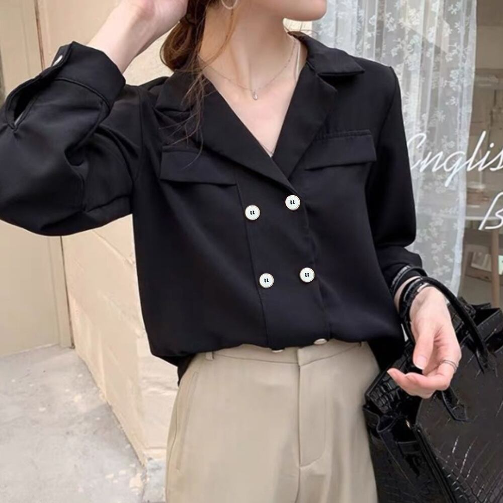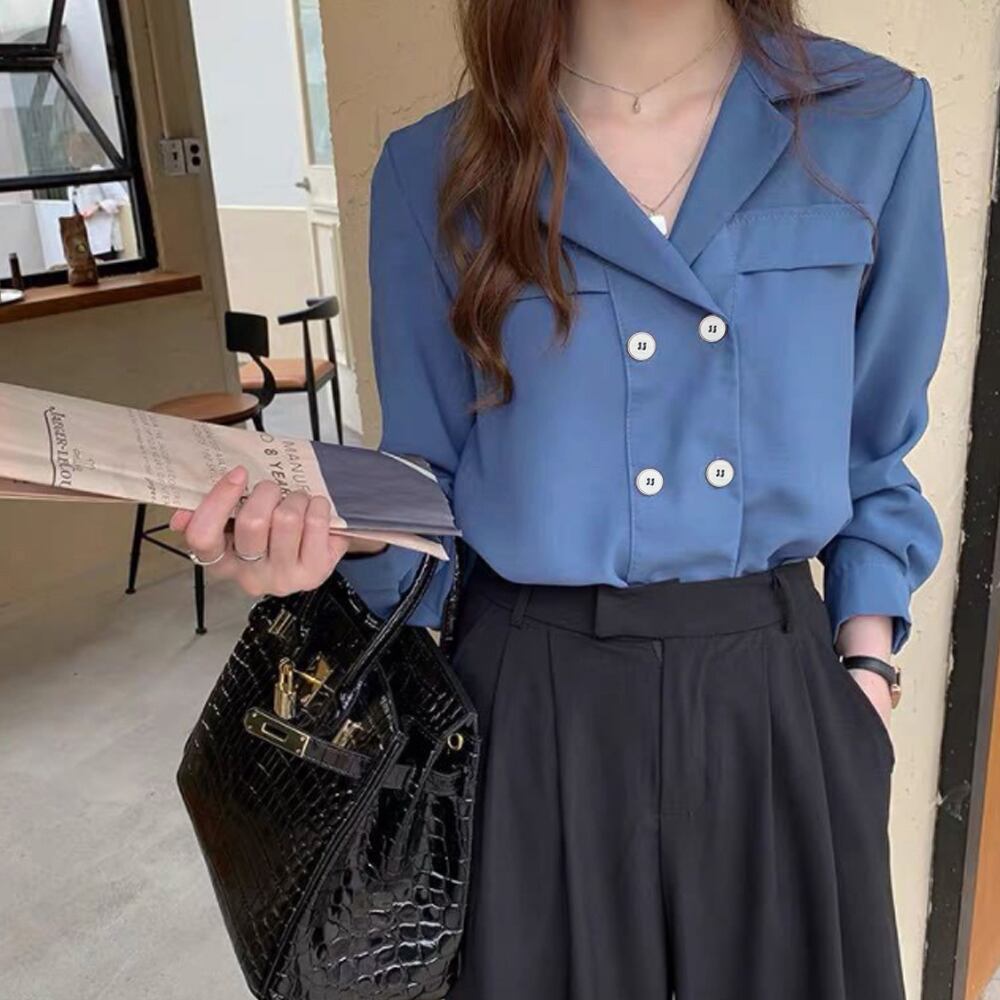 シャツブラウス レディース Vネック シャツ ダブルブレスト トップス 長袖
