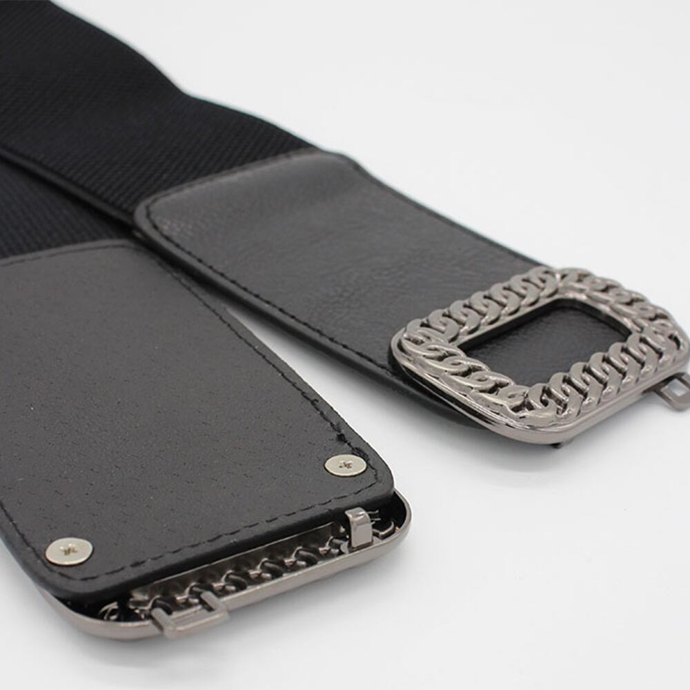 バックルベルト レディース ゴム フェイクレザー 細見え おしゃれ