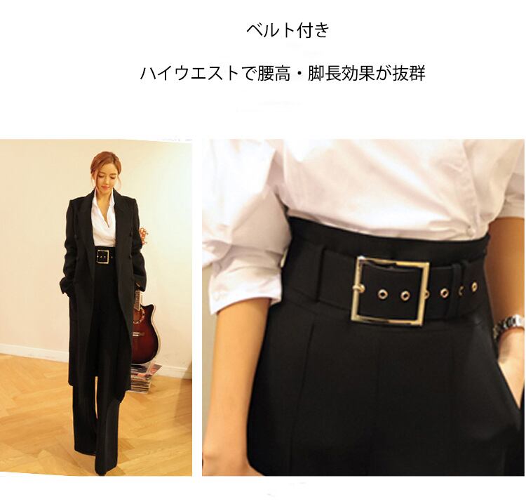 腰高・脚長効果で人気のハイウエストワイドレッグパンツ