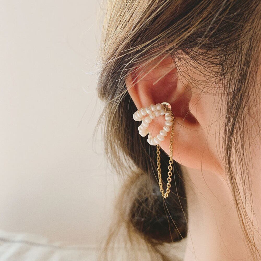 耳たぶではなく、耳の軟骨部分につけて一味違ったおしゃれを楽しめる片耳用イヤーカフ