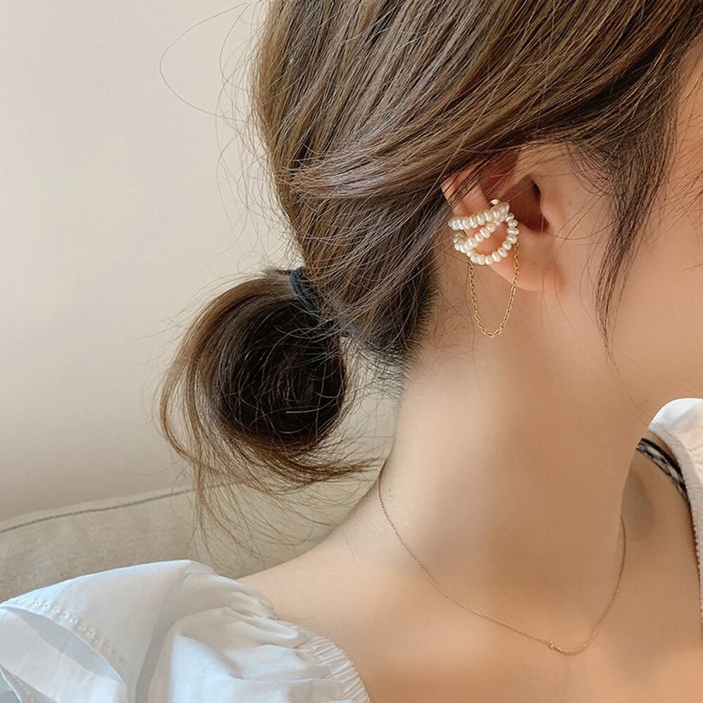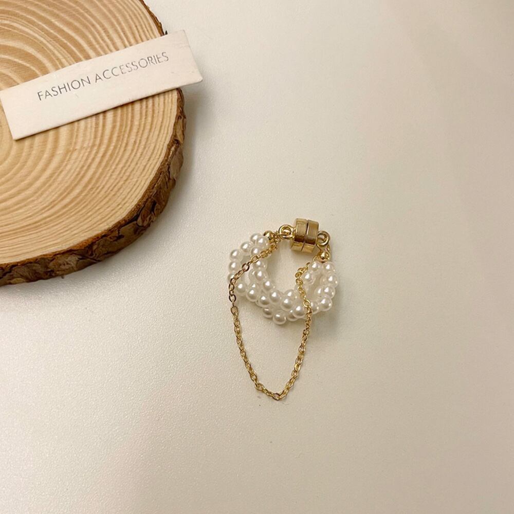 イヤーカフ チェーン レディース 片耳用 イヤリング マグネット キャッチ フェイクパール アクセサリー