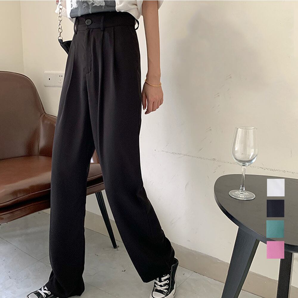 韓国ハイウエスト ロングパンツ 大人カジュアル ストレートパンツ スーツパンツ 薄手ボトムス ゆるシルエットバギーパンツ