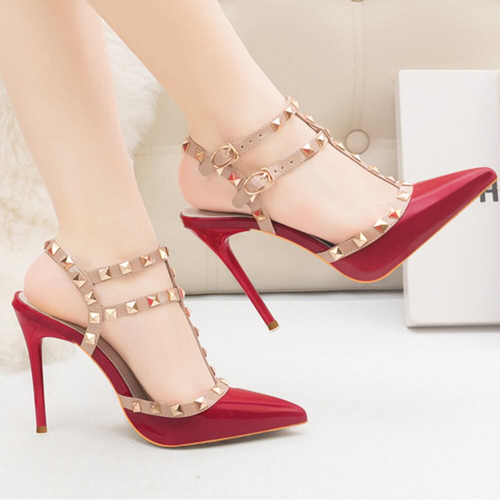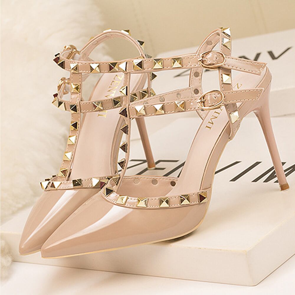サンダルパンプス ハイヒール レディース スタッズpumpsポインテッドトゥ
