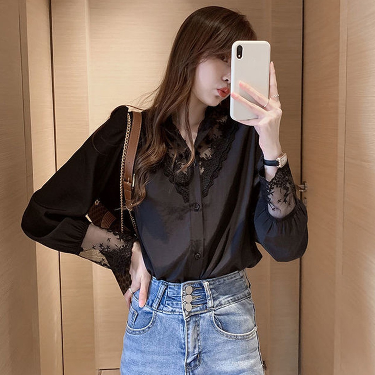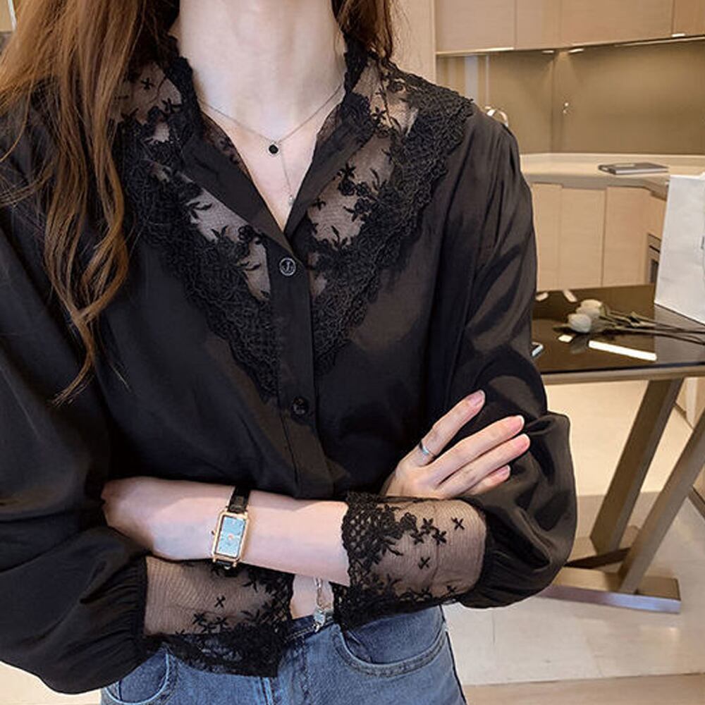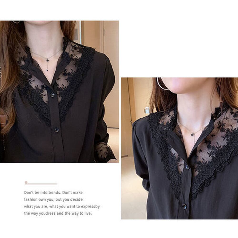 スリーブとデコルテラインに上品なレースなエレガントなブラウス