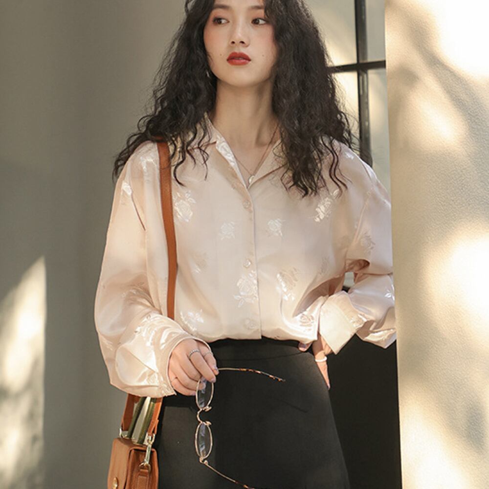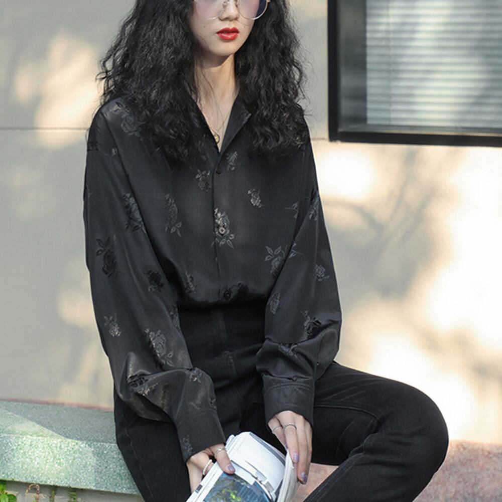 レトロフラワーシャツ レディース ゆったり 開襟シャツ 新作 プリント 韓国風