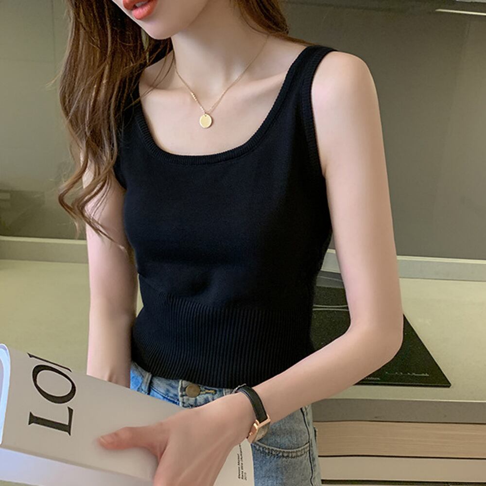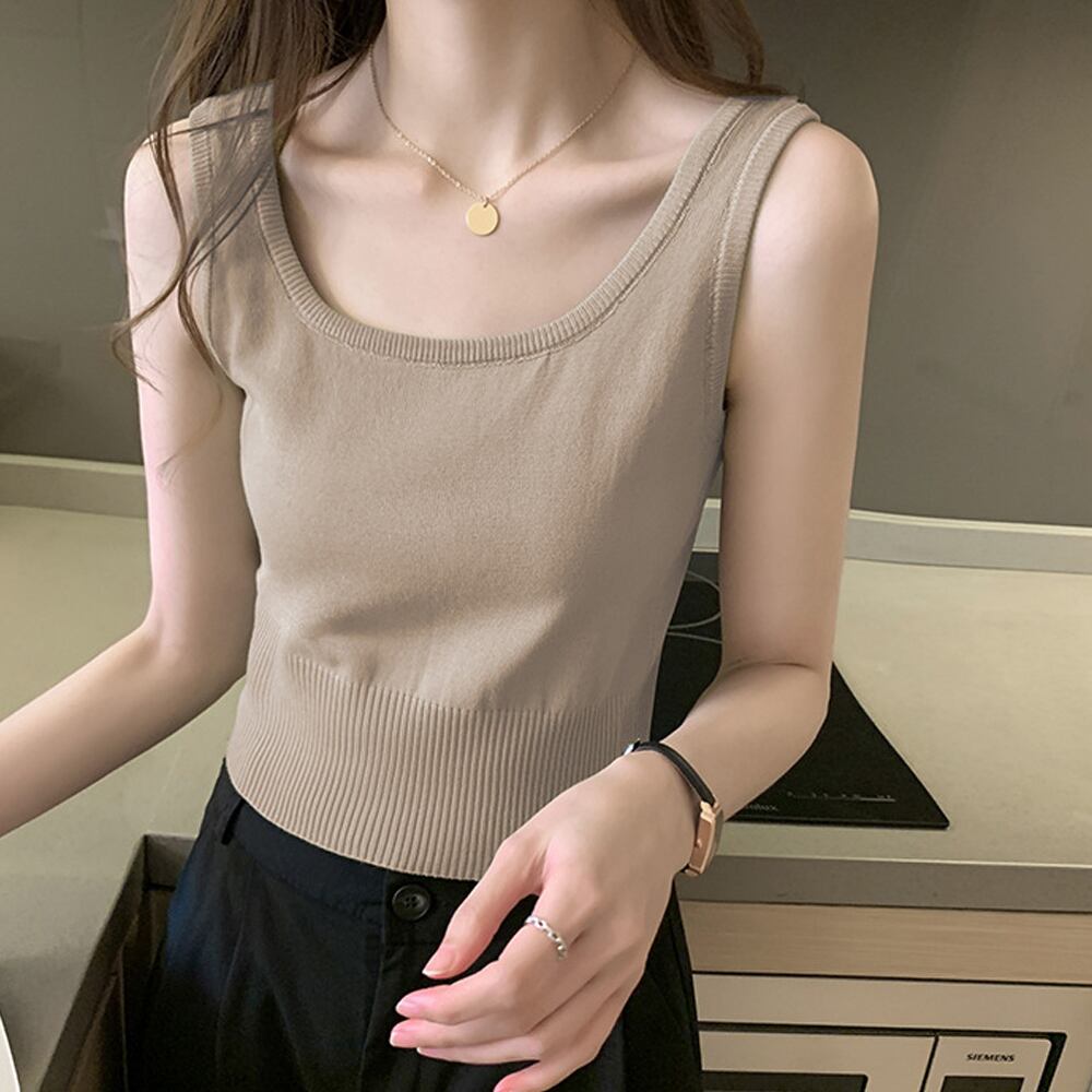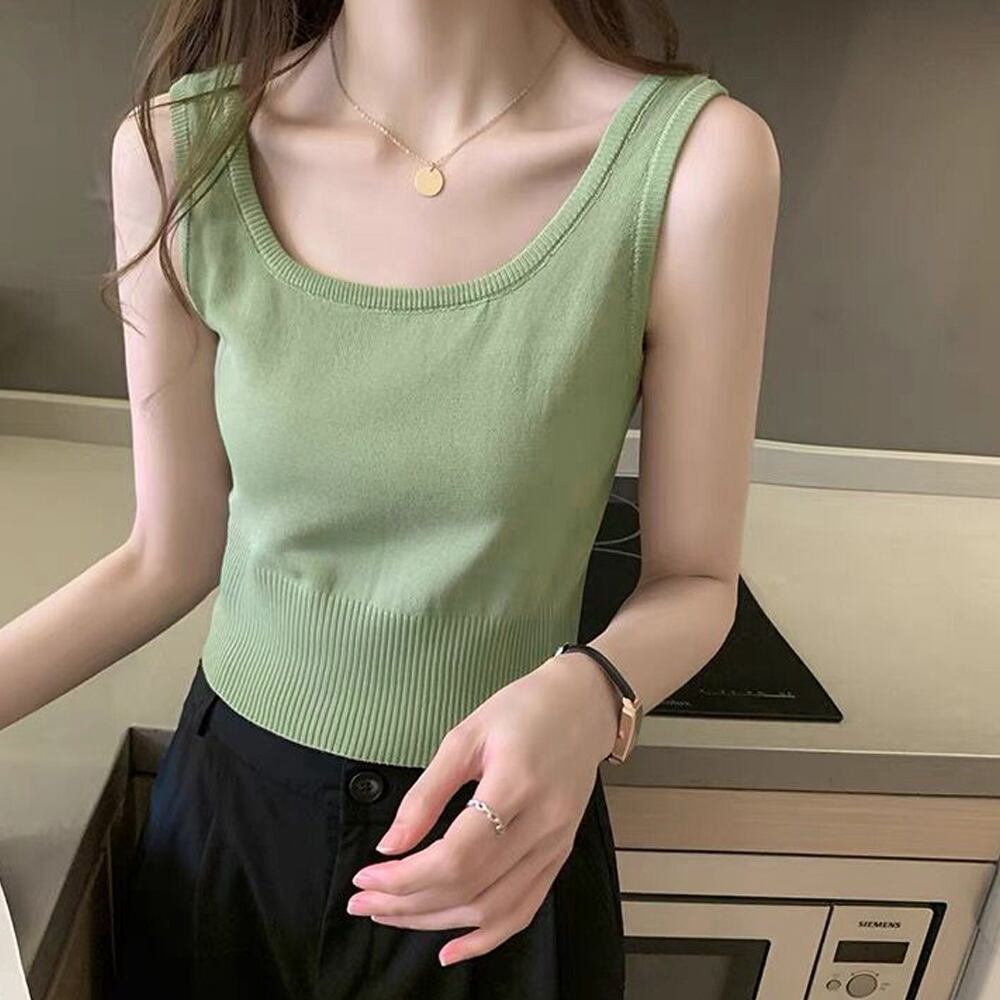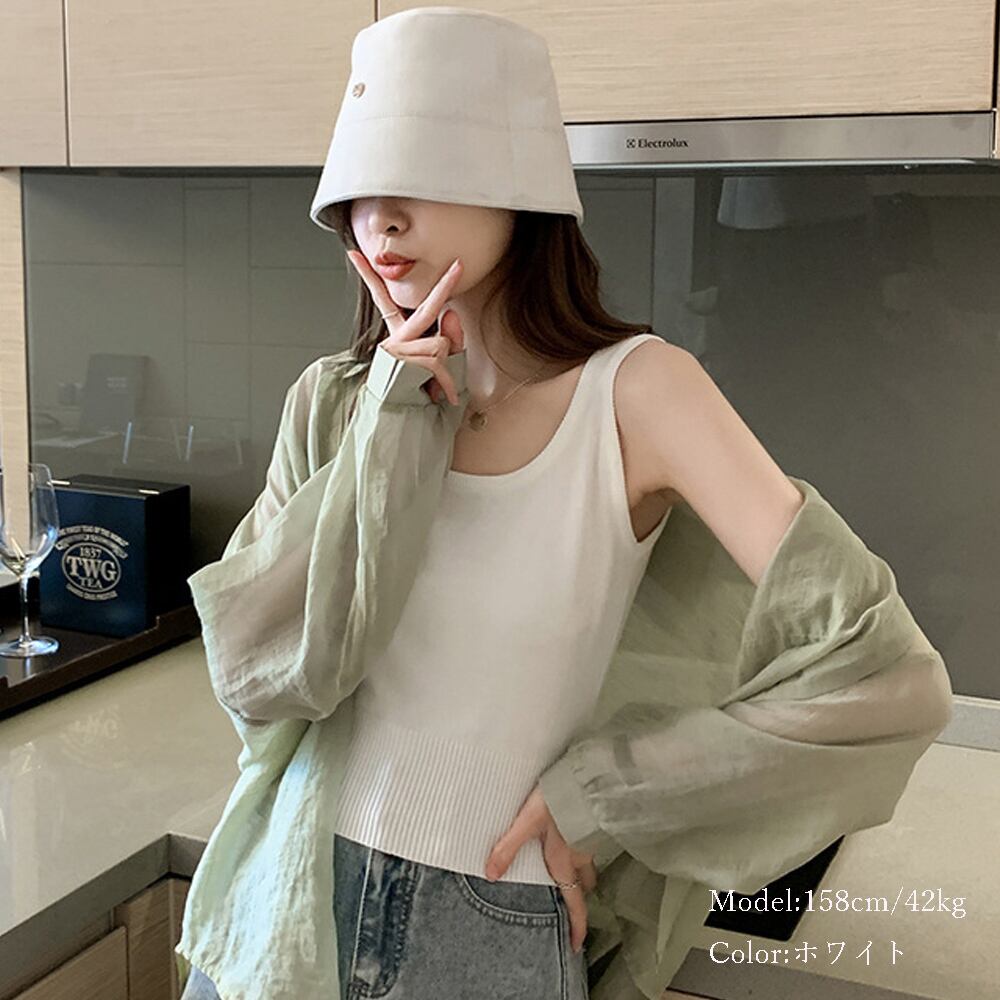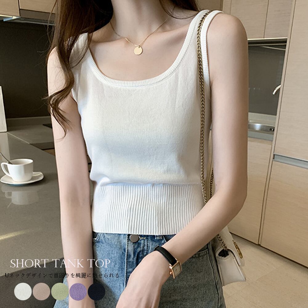 タンクトップス レディース 無地 ショート丈 ニットタンク Uネック トップス