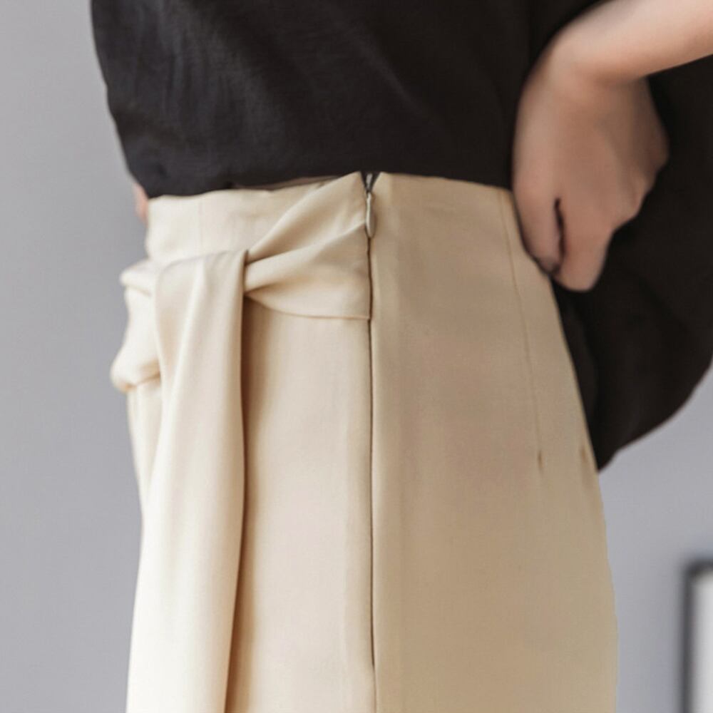 動きのあるディテールデザインが魅力のウエストリボンタイトスカートです
