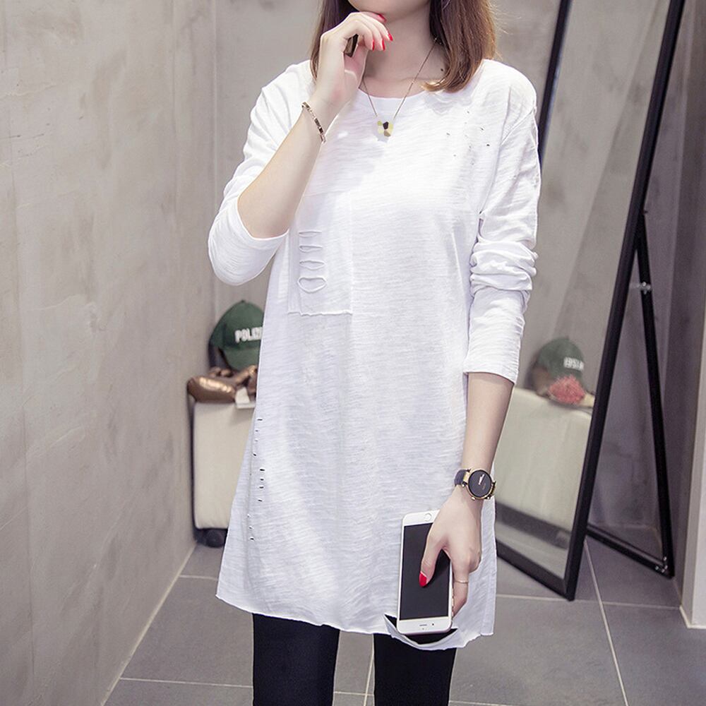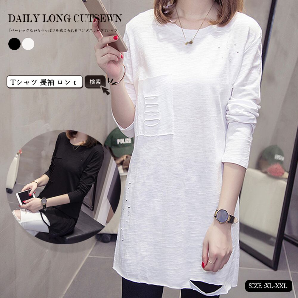 ロングカットソーゆったり カジュアル トップス ベーシック 薄手 プルオーバー ビッグTシャツ ロングtシャツ白 ロンティースエット