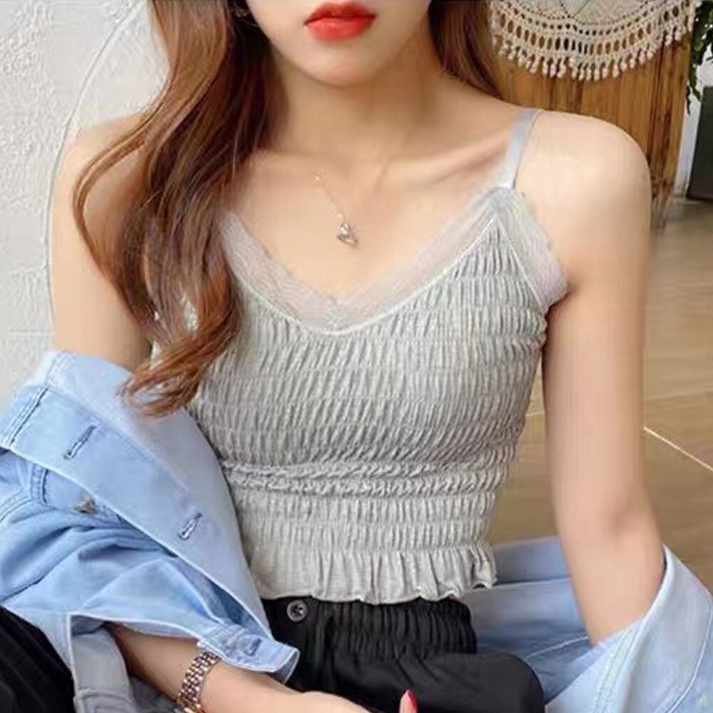 キャミソール ギャザー インナー ノンワイヤー トップス へそ出し 肌着 春夏 ショート丈トップス 重ね着 背中見せ Vネック セクシー